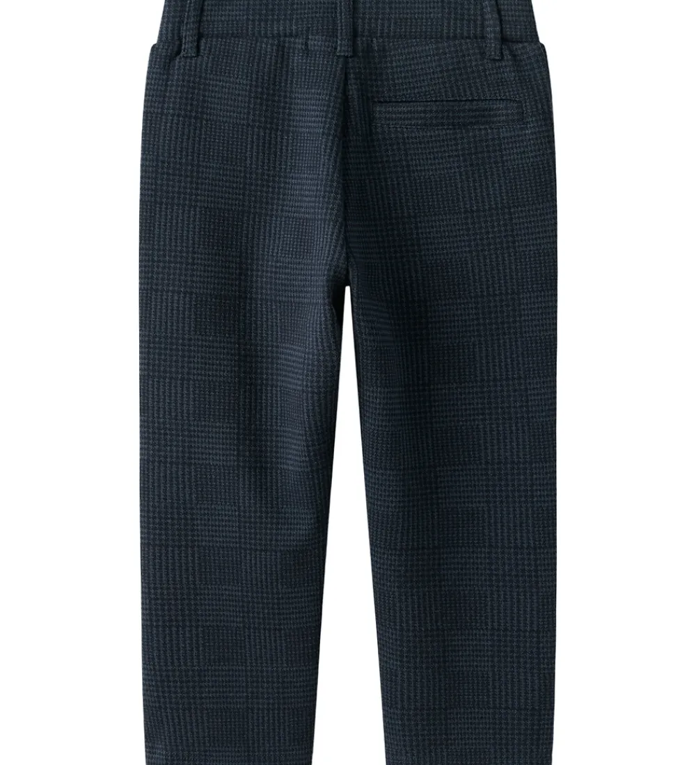 Stilfulde sweatpants fra Name It med et diskret ternet mønster i dyb blå nuance. Sweatpantsene har en elastisk talje med en praktisk lukning og et lille emblem i siden. Navn Its design inkluderer også rummelige lommer for et moderne look.