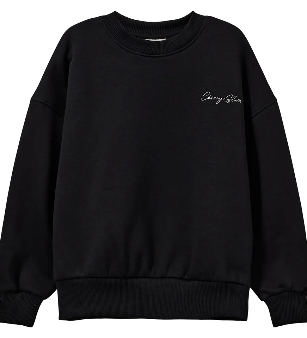 Stilfuld sweatshirt fra Sofie Schnoor i en dyb, sort farve. Sofie Schnoor sweatshirten har en rund halsudskæring og lange ærmer. På brystet præsenteres et subtilt tekstprint og et stort kirsebærprint på ryggen i hvid.