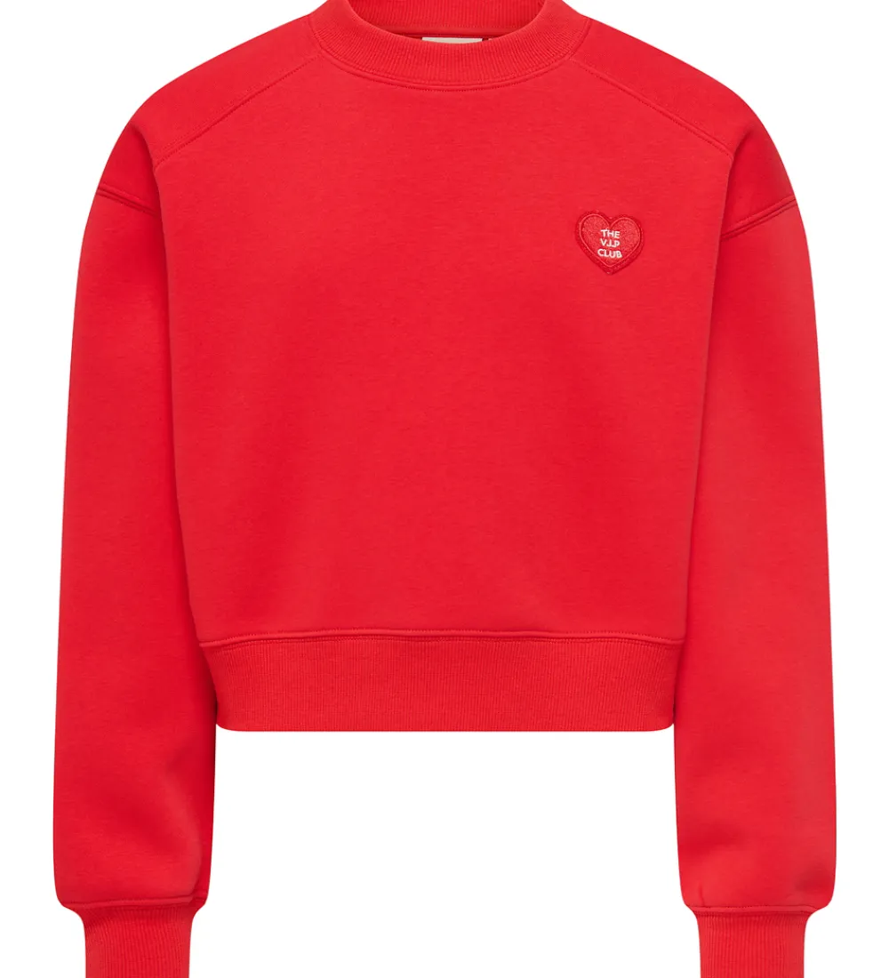 Smart Kids Only sweatshirt i en størk rød farve med et rødt hjerte broderet på venstre bryst. Kids Only sweatshirten har lange ærmer og en rund halsudskæring samt brede ribkanter. Indvendigt er der blødt, børstet bomuld.
