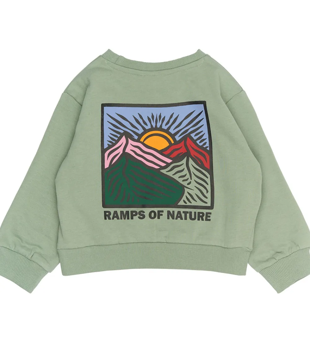 Dejlig The New sweatshirt i en støvet, lysegrøn farve. The New sweatshirten har lange ærmer og en rund hals, og på brystet samt ryggen prydes et fint broderet motiv, der tilføjer et unikt touch.