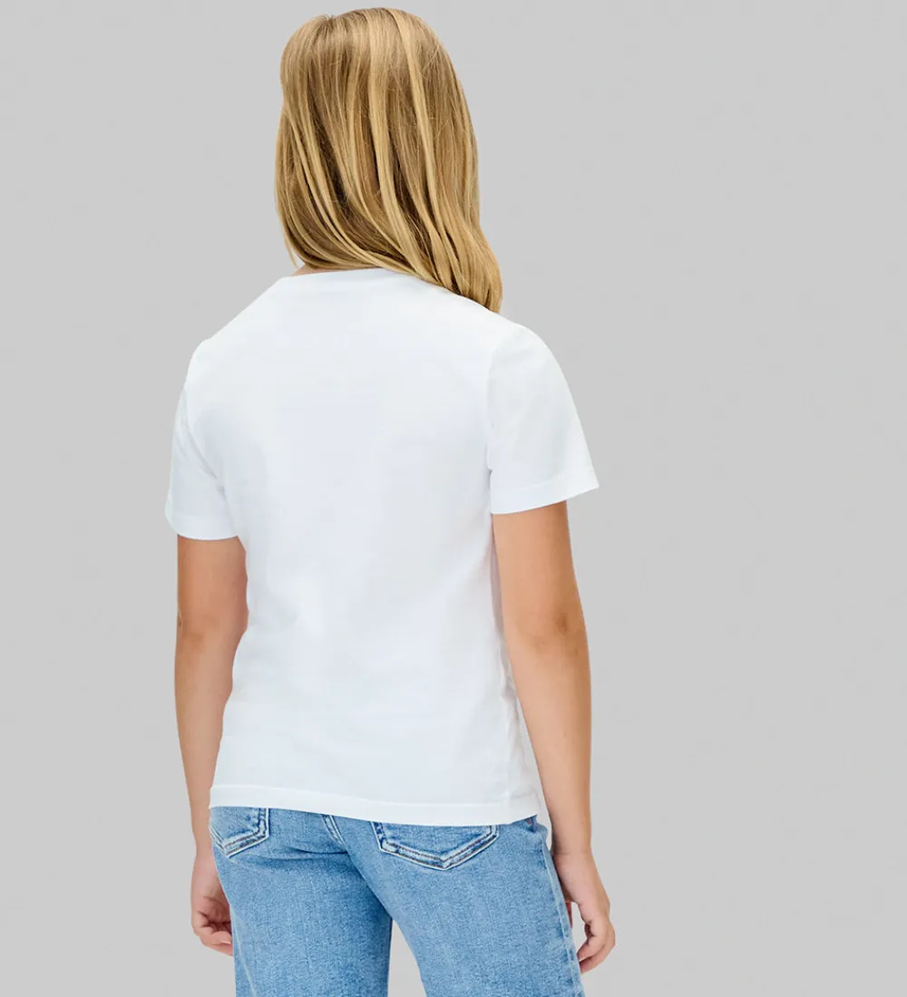 Elegant Calvin Klein t-shirt i hvid. T-shirten har et enkelt design med et Calvin Klein logo på brystet, som giver et stilrent udtryk. Den har en klassisk rund halsudskæring og korte ærmer.