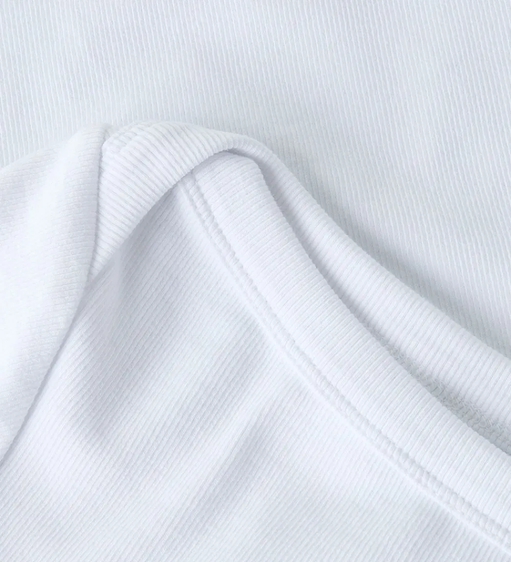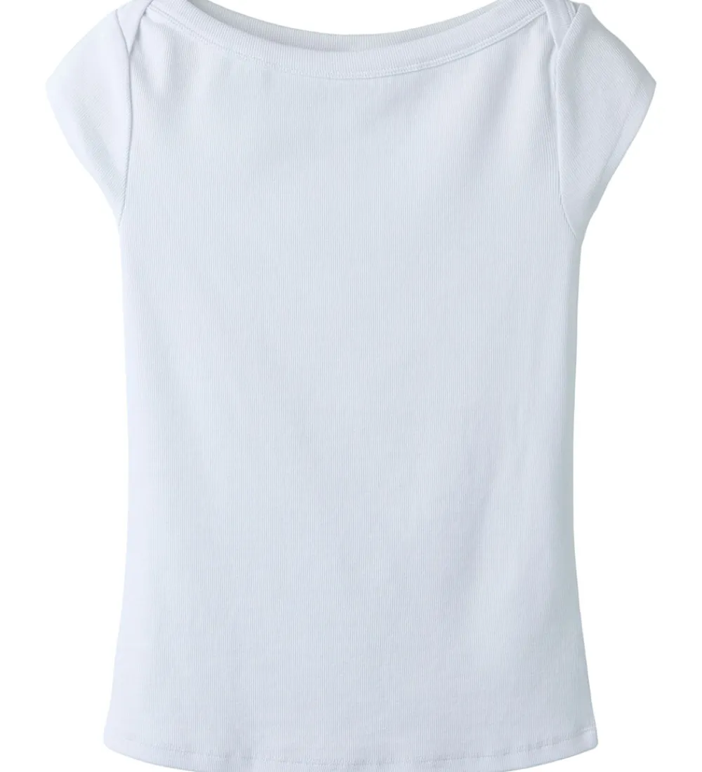 Flot LMTD t-shirt i hvid med ribstruktur. LMTD t-shirten har en bådudskæring og korte ærmer.