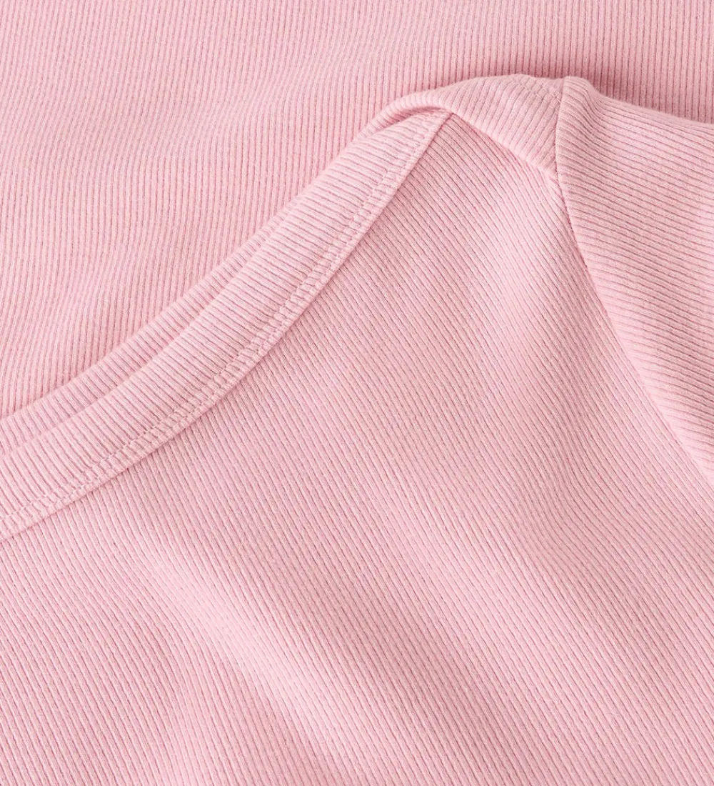 Fin LMTD t-shirt i rosa med ribstruktur. LMTD t-shirten har en bådudskæring og korte ærmer.