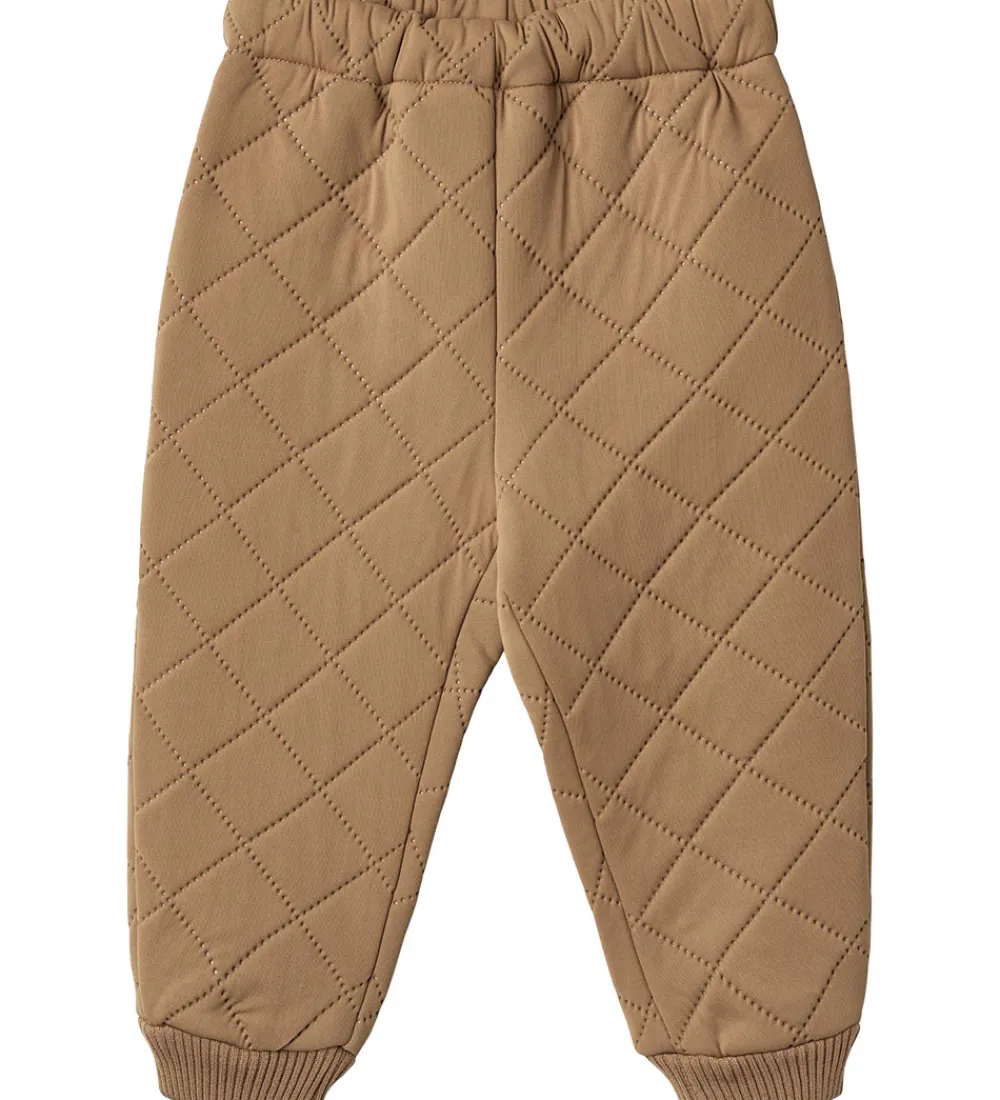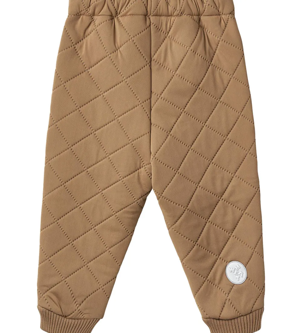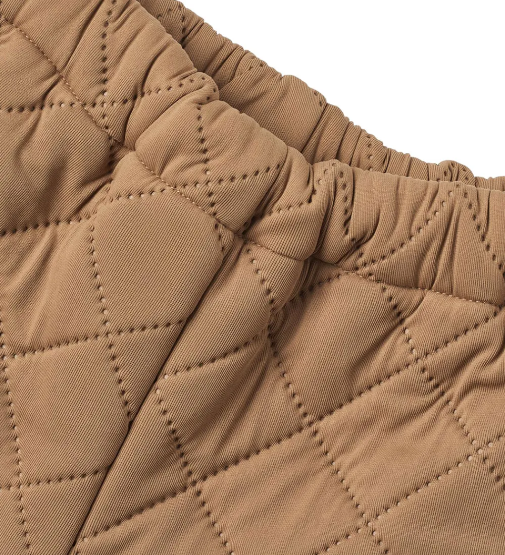 Skønne Wheat termobukser i nøddebrun. Termobukserne har en quiltet struktur.