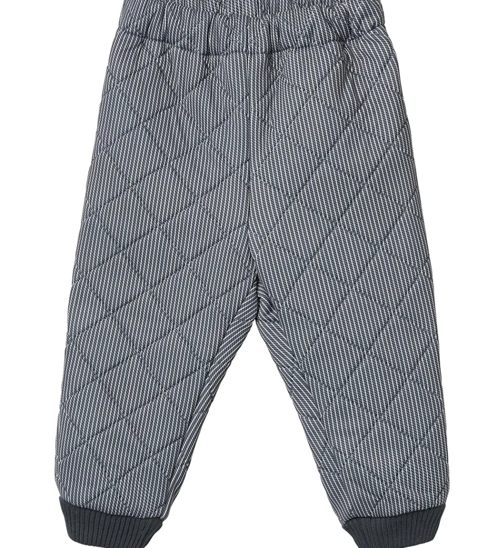 Dejlige Wheat termobukser i navyblå med fine, hvide striber. Termobukserne har en quiltet struktur.