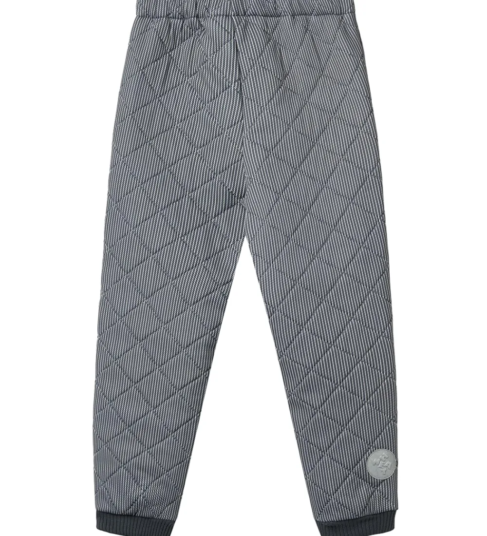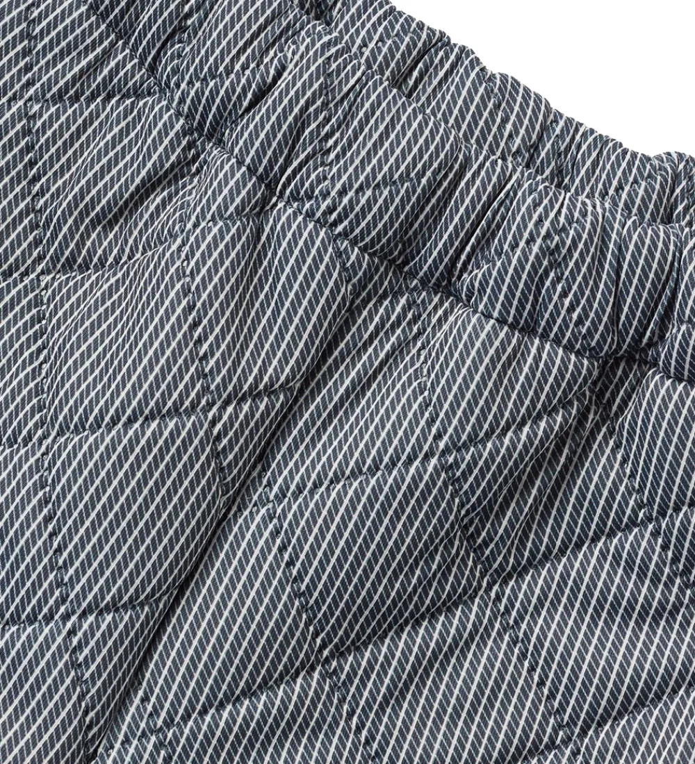 Flotte Wheat termobukser i navyblå med fine, hvide striber. Termobukserne har en quiltet struktur.