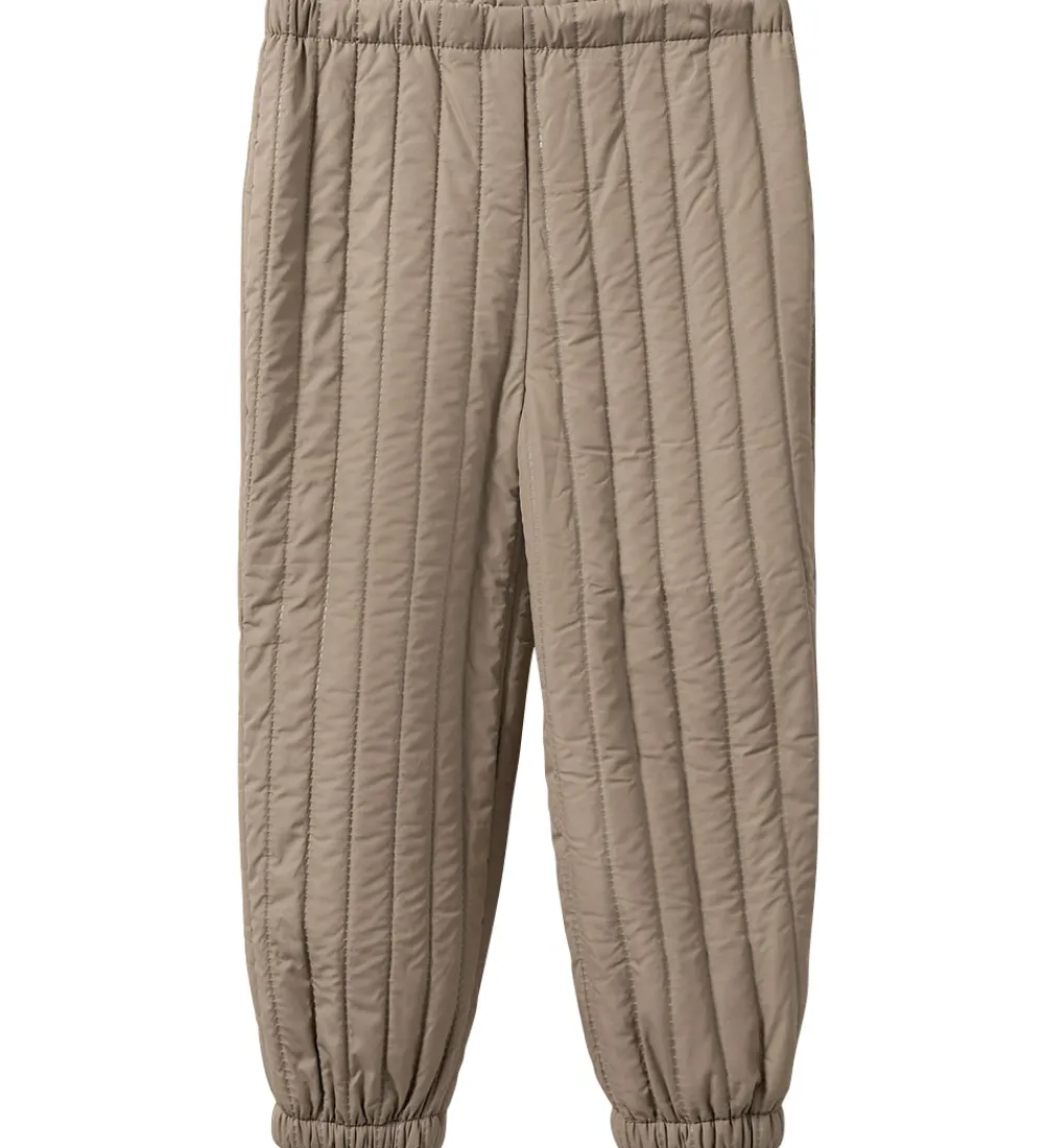 Flotte Sofie Schnoor termobukser i en lys, brun nuance og med en quiltet struktur af indprægede, lodrette striber.