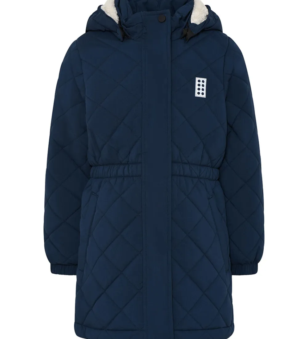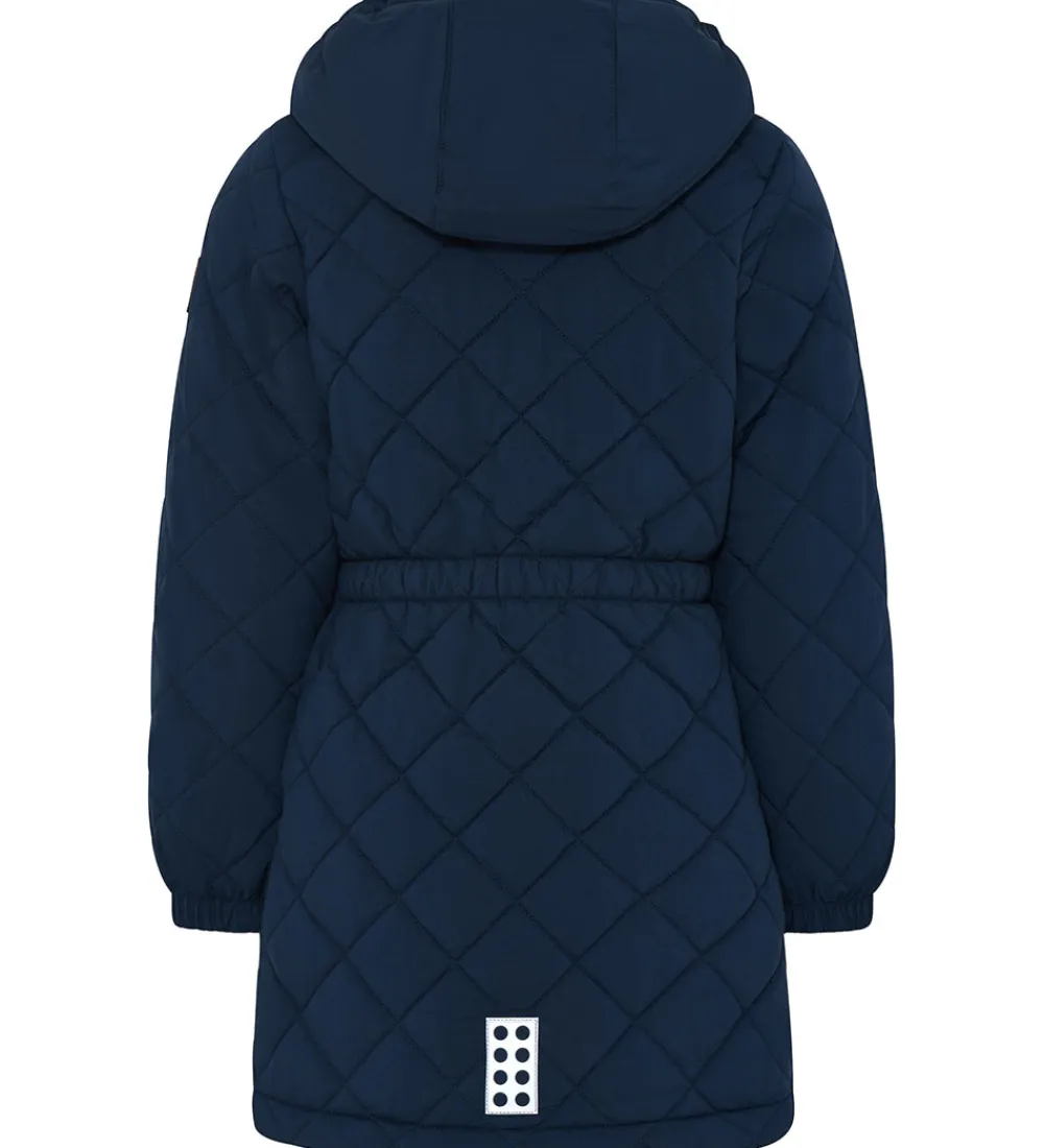 Skøn LEGO® Wear termofrakke i navyblå med en quiltet struktur. Der er en logo-refleks på venstre bryst og lænden.