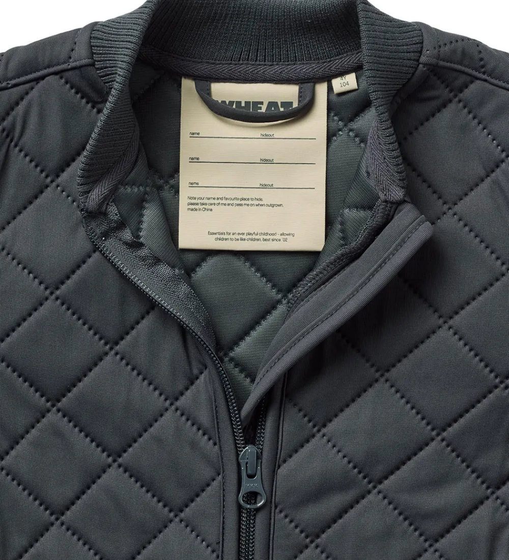 Lækker Wheat termojakke i ensfarvet, mørk koksgrå. Termojakken har en quiltet struktur.
