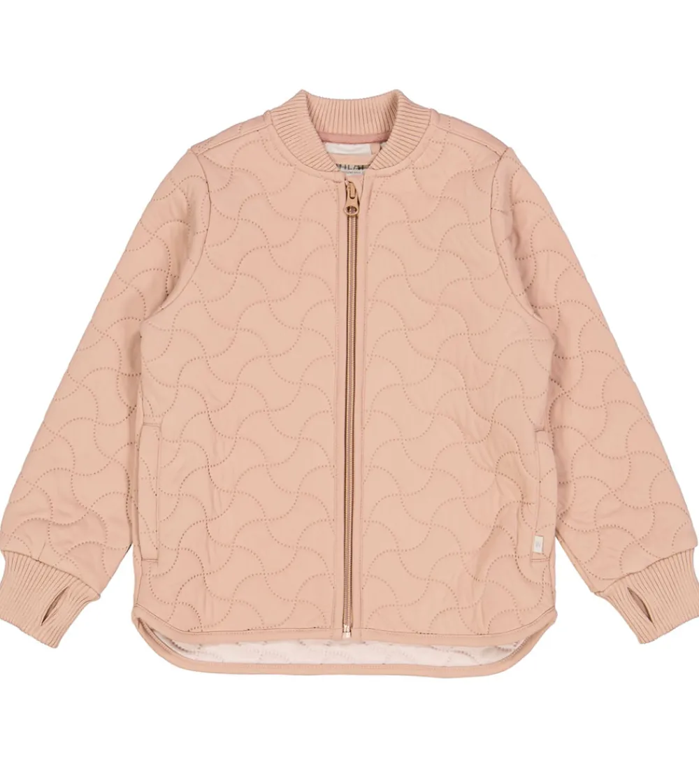 Flot Wheat termojakke i støvet rosa med en bølgende, quiltet struktur.