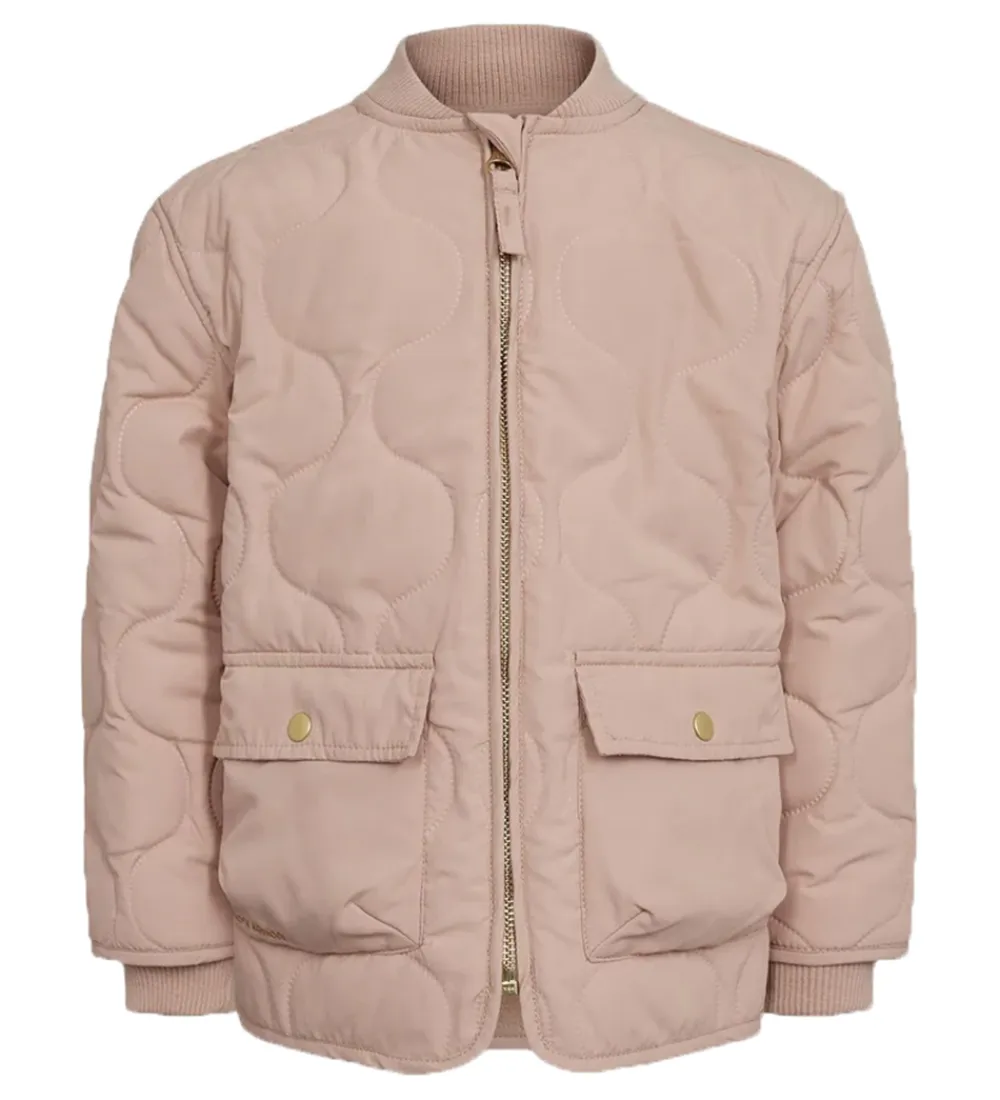 Skøn Petit by Sofie Schnoor termojakke i rosa med en broderet cupcake og teksten “CUPCAKE TIME” på ryggen. Termojakken er med en bølgende, quiltet struktur.