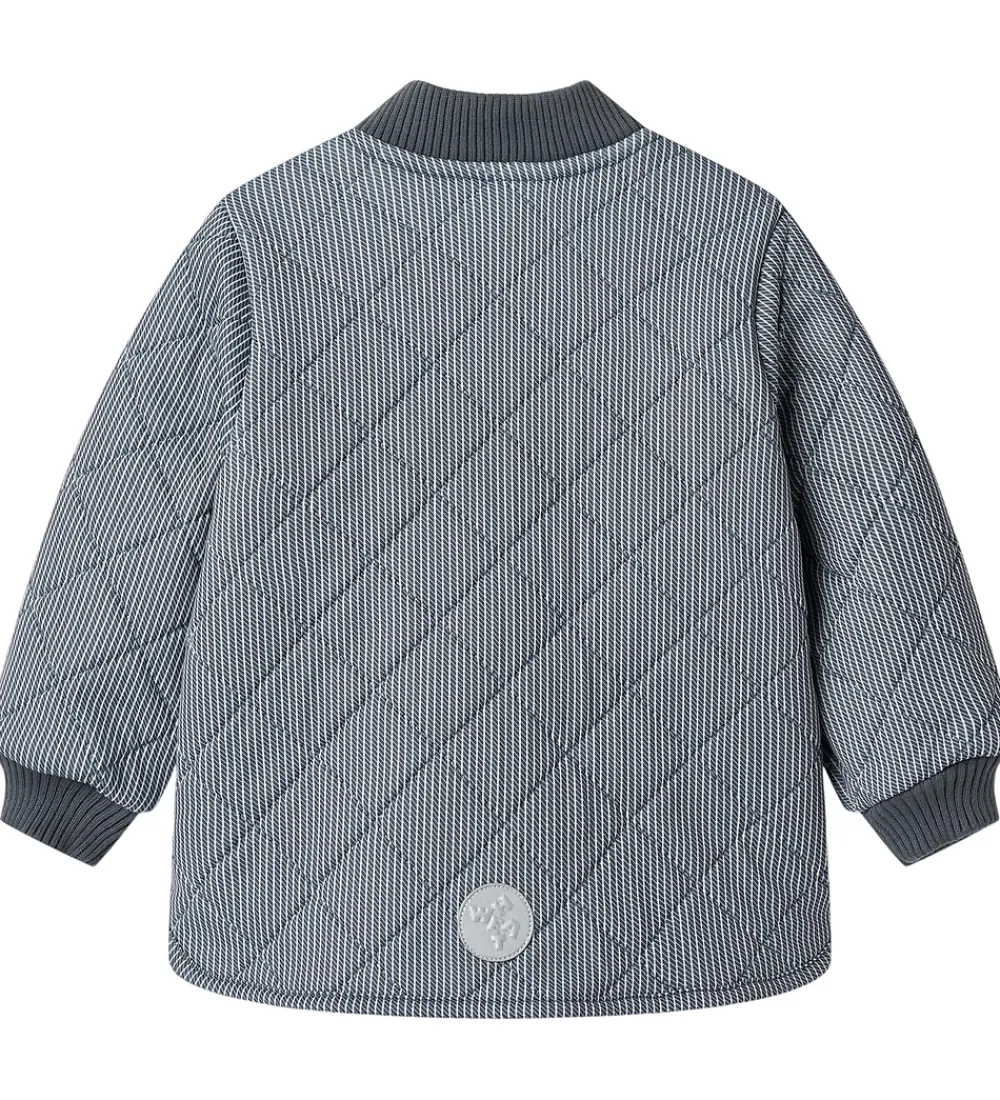 Flot Wheat termojakke i mørkeblå med fine, hvide striber og med en quiltet struktur.
