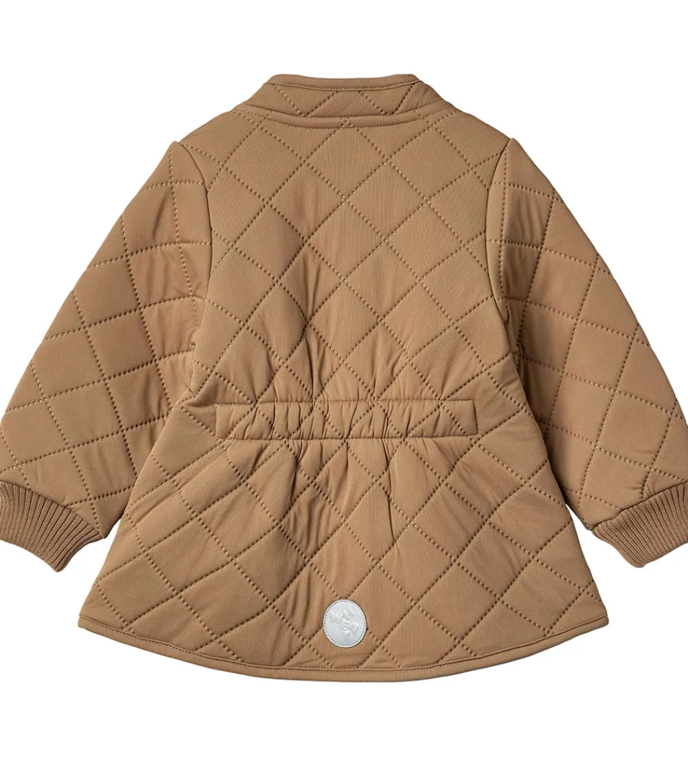 Flot Wheat termojakke i nøddebrun med en quiltet struktur.