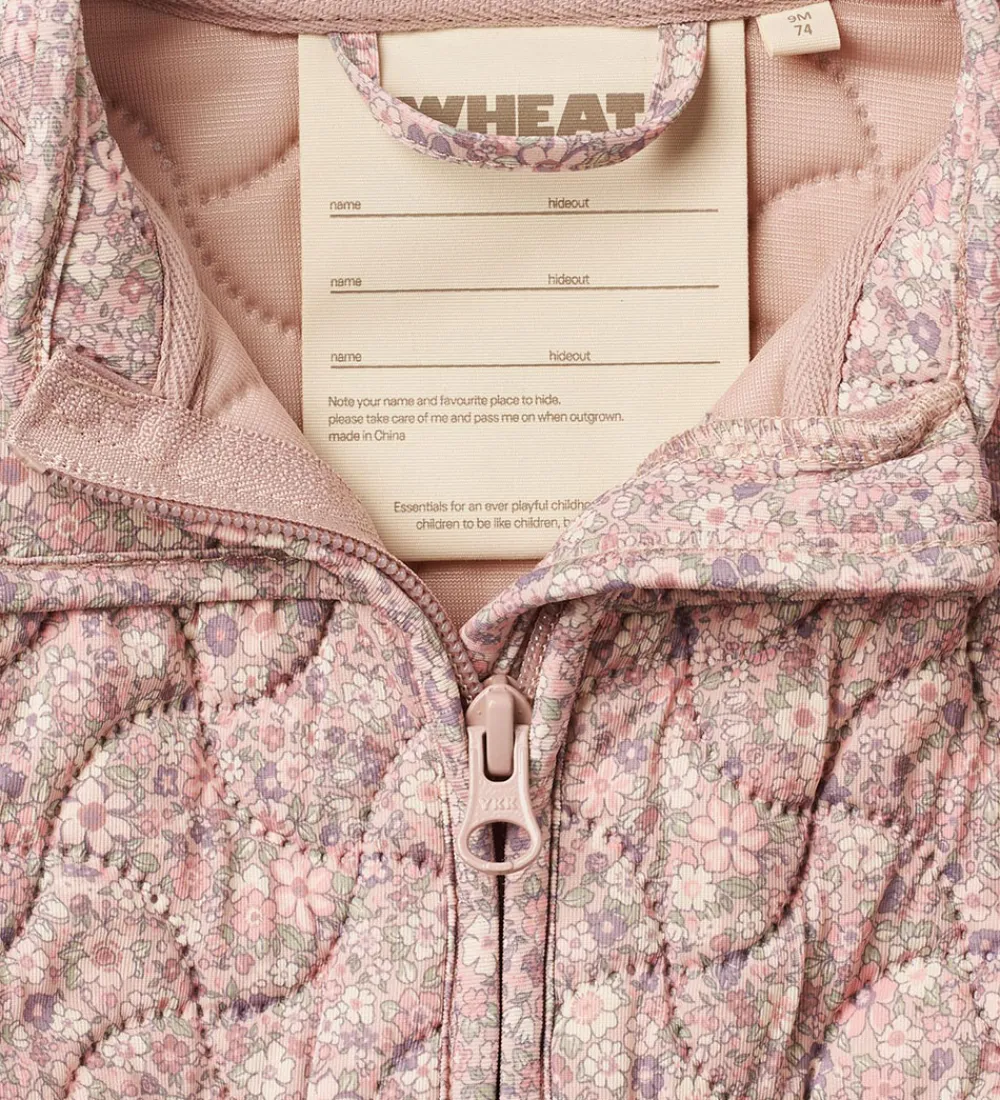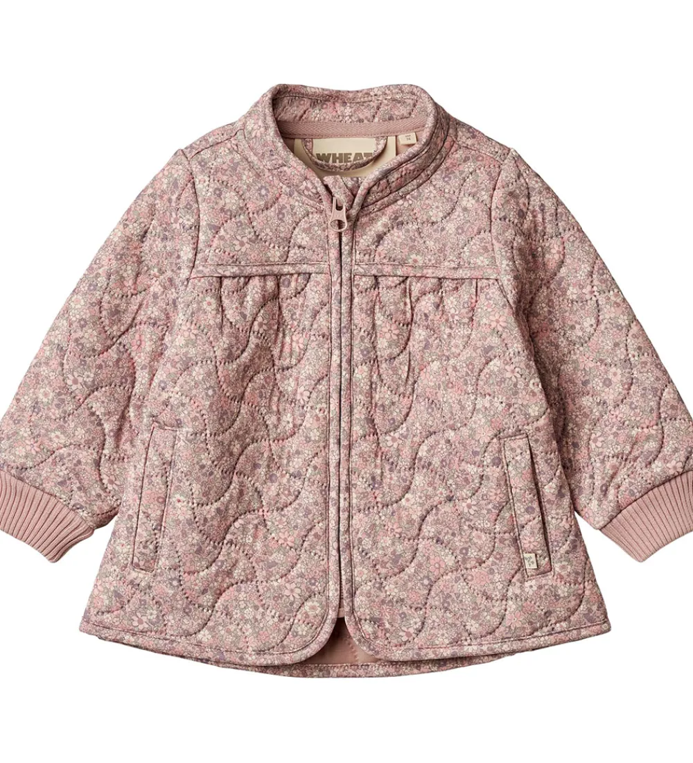 Flot Wheat termojakke i rosa med et alloverblomsterprint og med en bølgende, quiltet struktur.