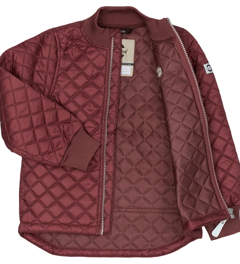 Lækkert Mikk-Line termotøj bestående af en termojakke og et par termobukser i ensfarvet støvet rød.