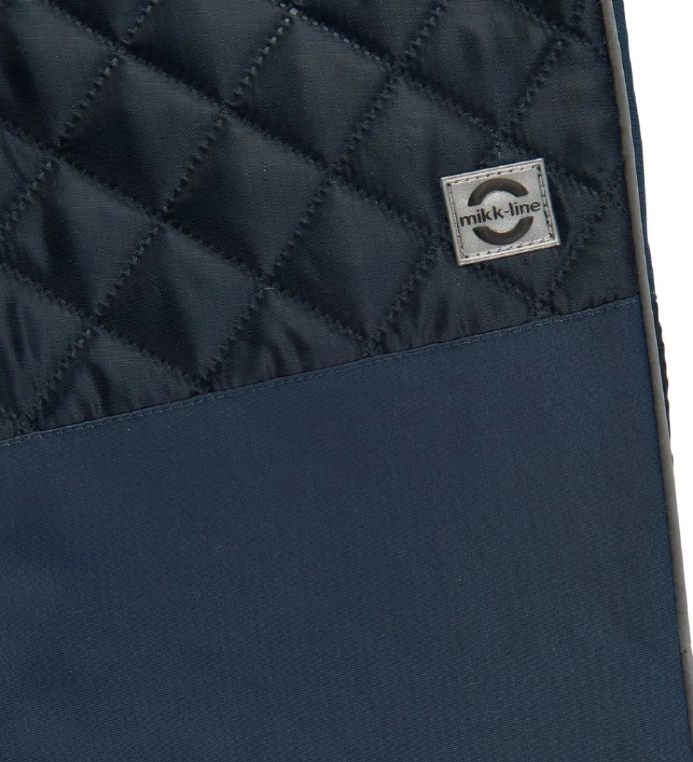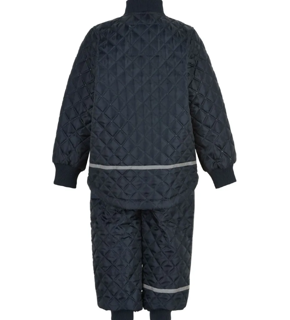 Smukt Mikk-Line termotøj bestående af en termojakke og et par termobukser i navy med en quiltet struktur.