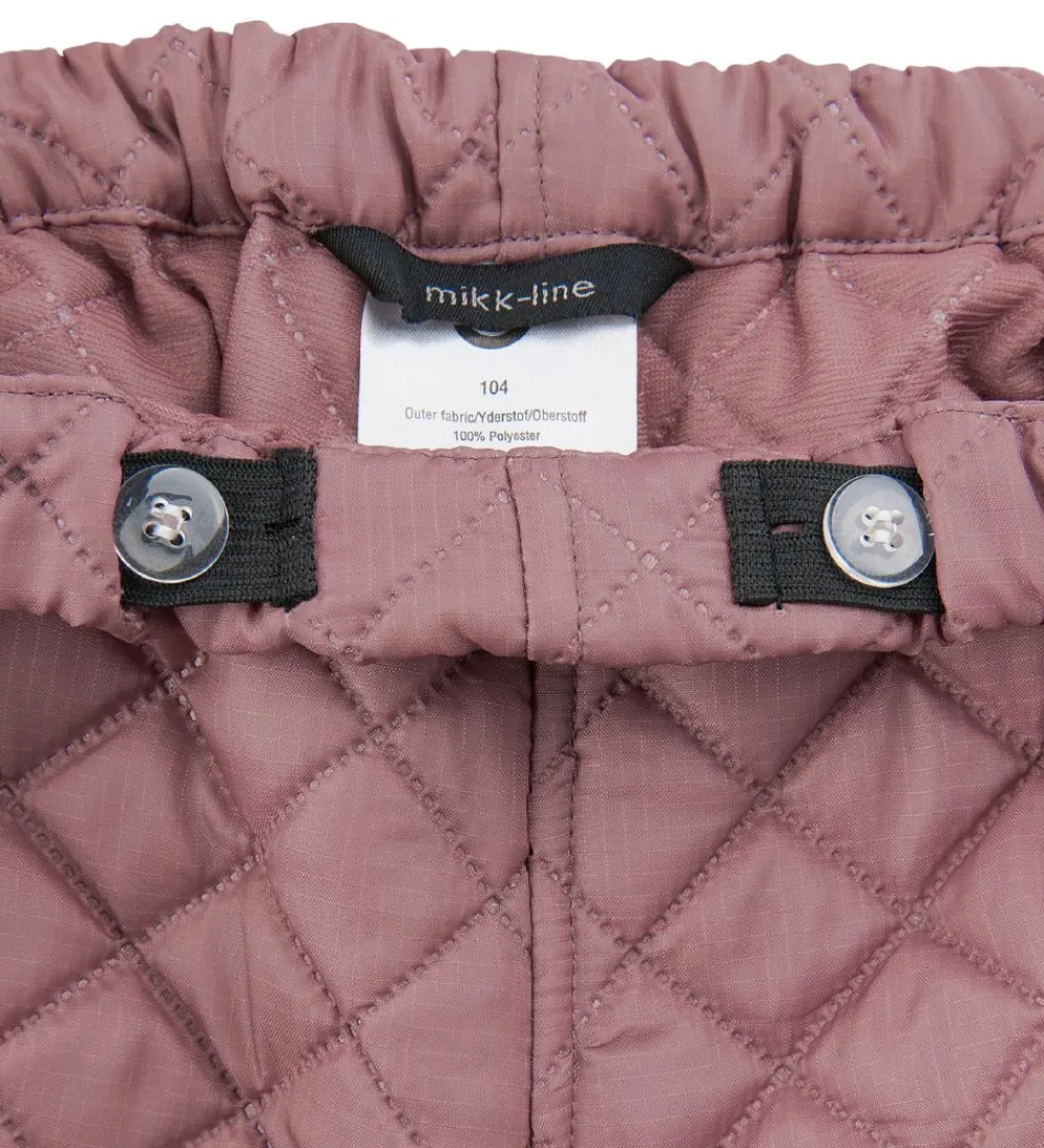 Mikk-Line termobukserne har en indvendigt justerbar elastikkant i livet. De har brede ribkanter i benåbningerne, og der er ekstra slidstærke områder på knæ og numse, så bukserne ikke bliver slidt så hurtigt