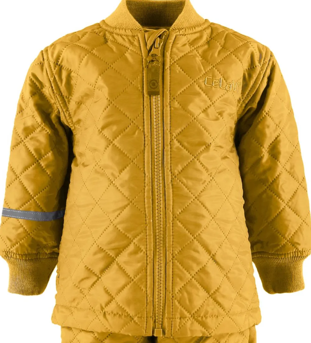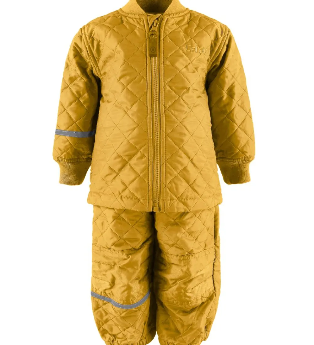 Smart CeLaVi termotøj bestående af en jakke og et par bukser i karry med et flot quiltet design.