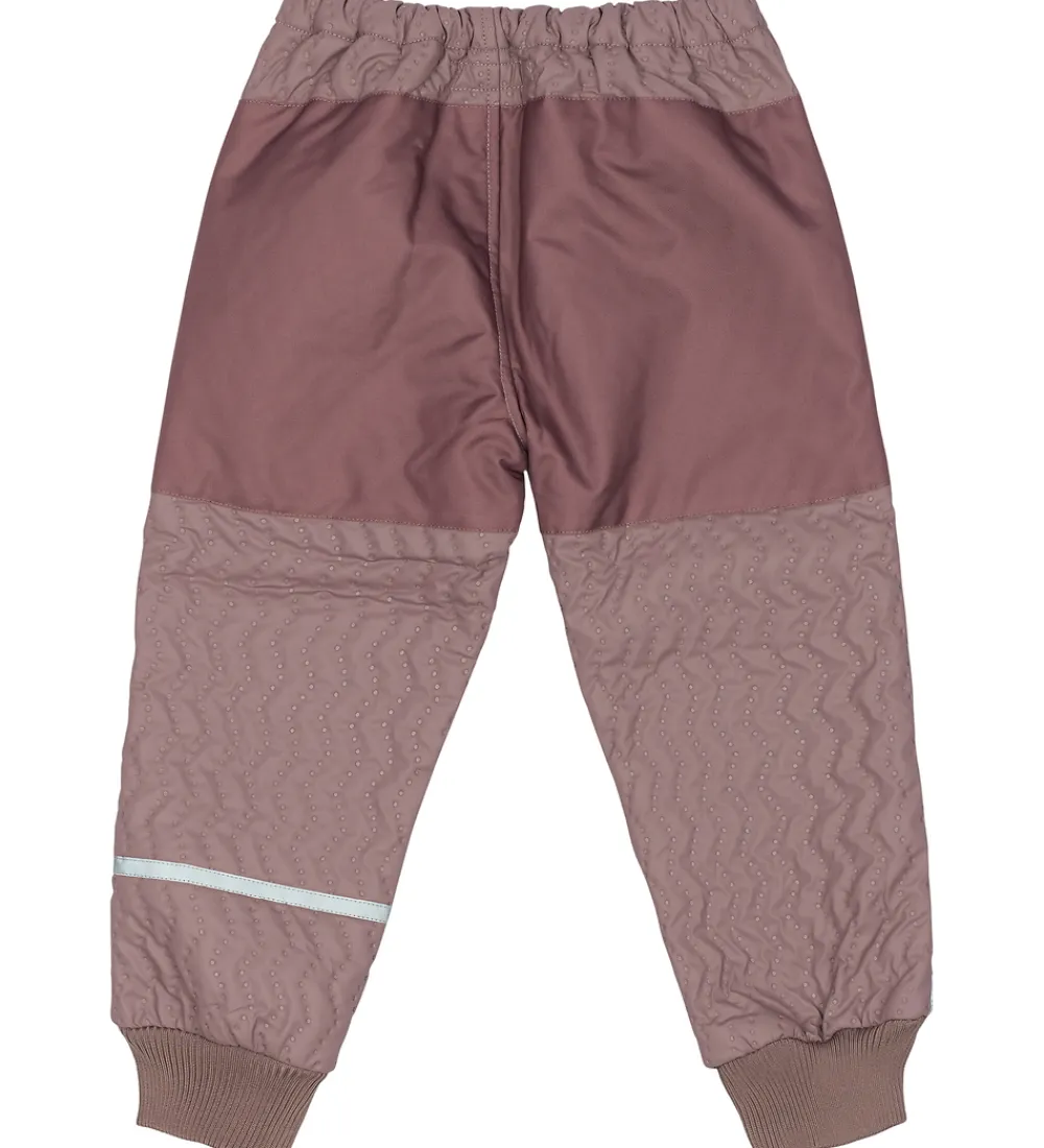 Flot Mikk-Line termotøj bestående af en termojakke og et par termobukser i støvet lilla og med en quiltet struktur.