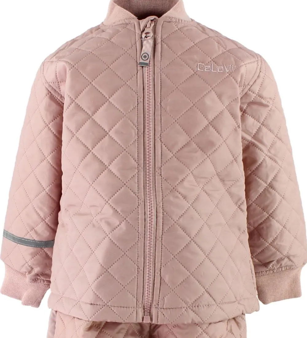 Sødt CeLaVi termotøj i støvet rosa med en quiltet struktur i stoffet.