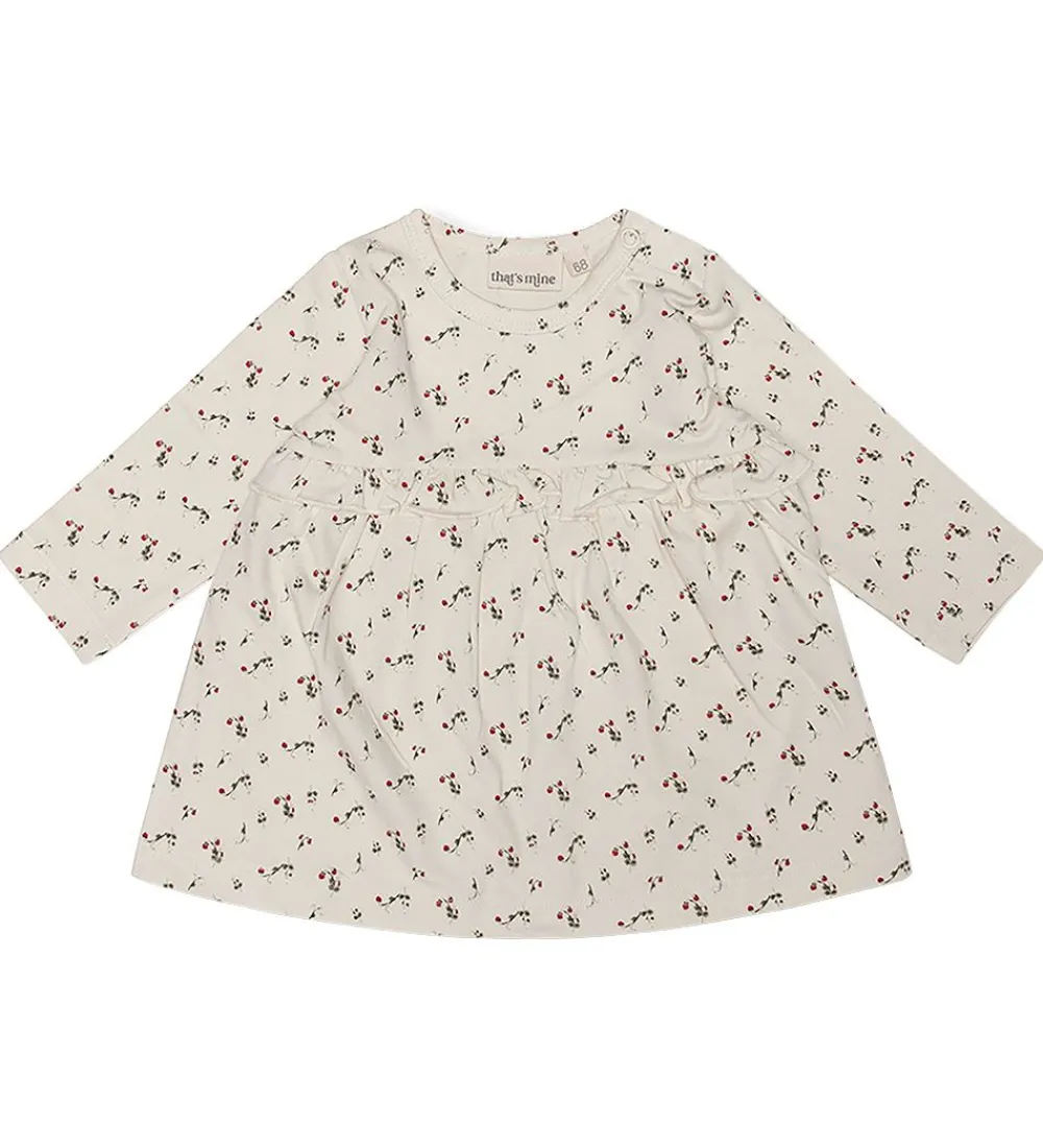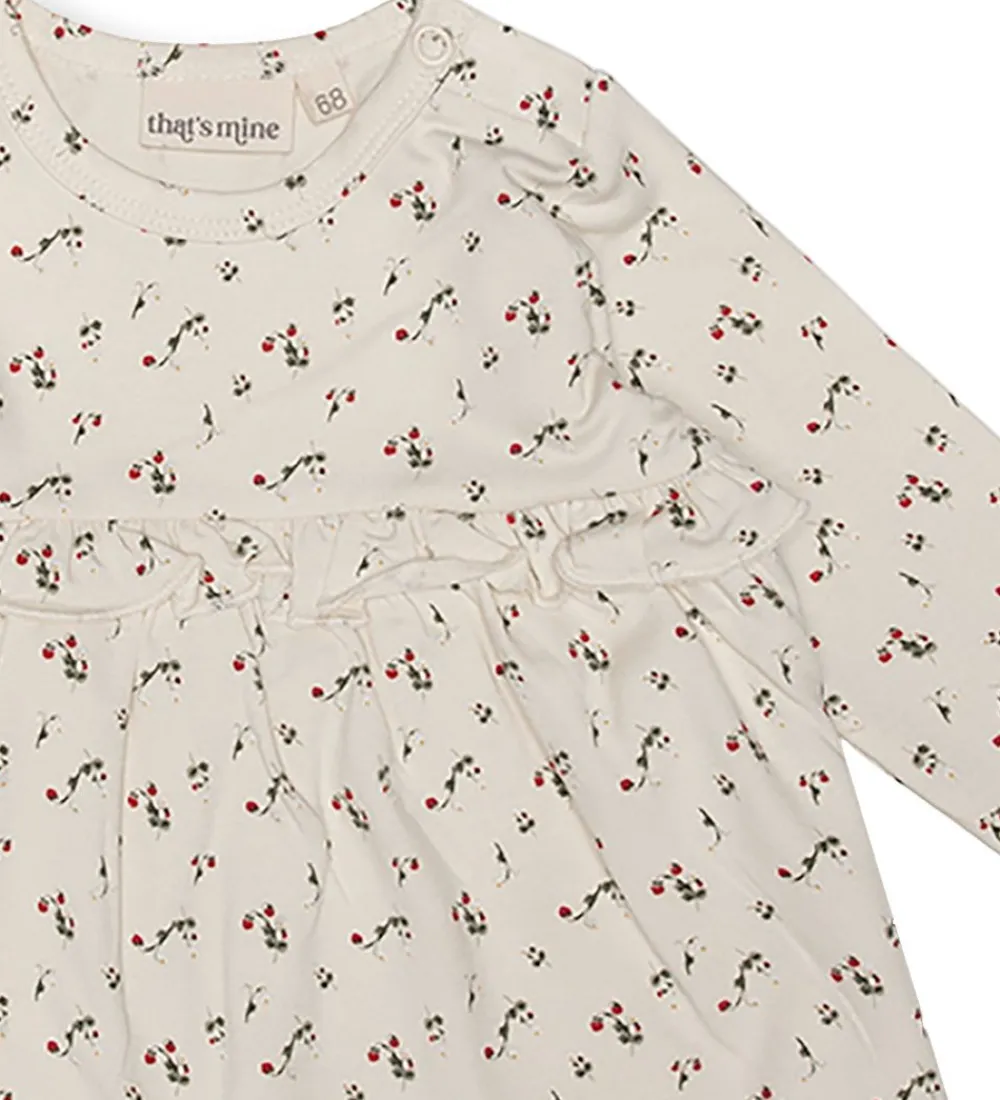 Flot That’s Mine tunika i beige, med print af grønne buske med røde bær over det hele.