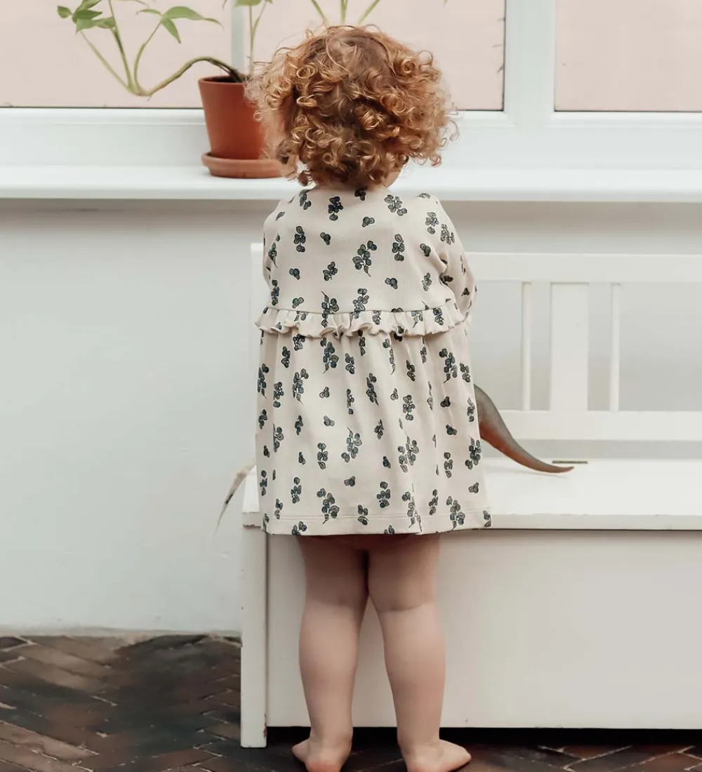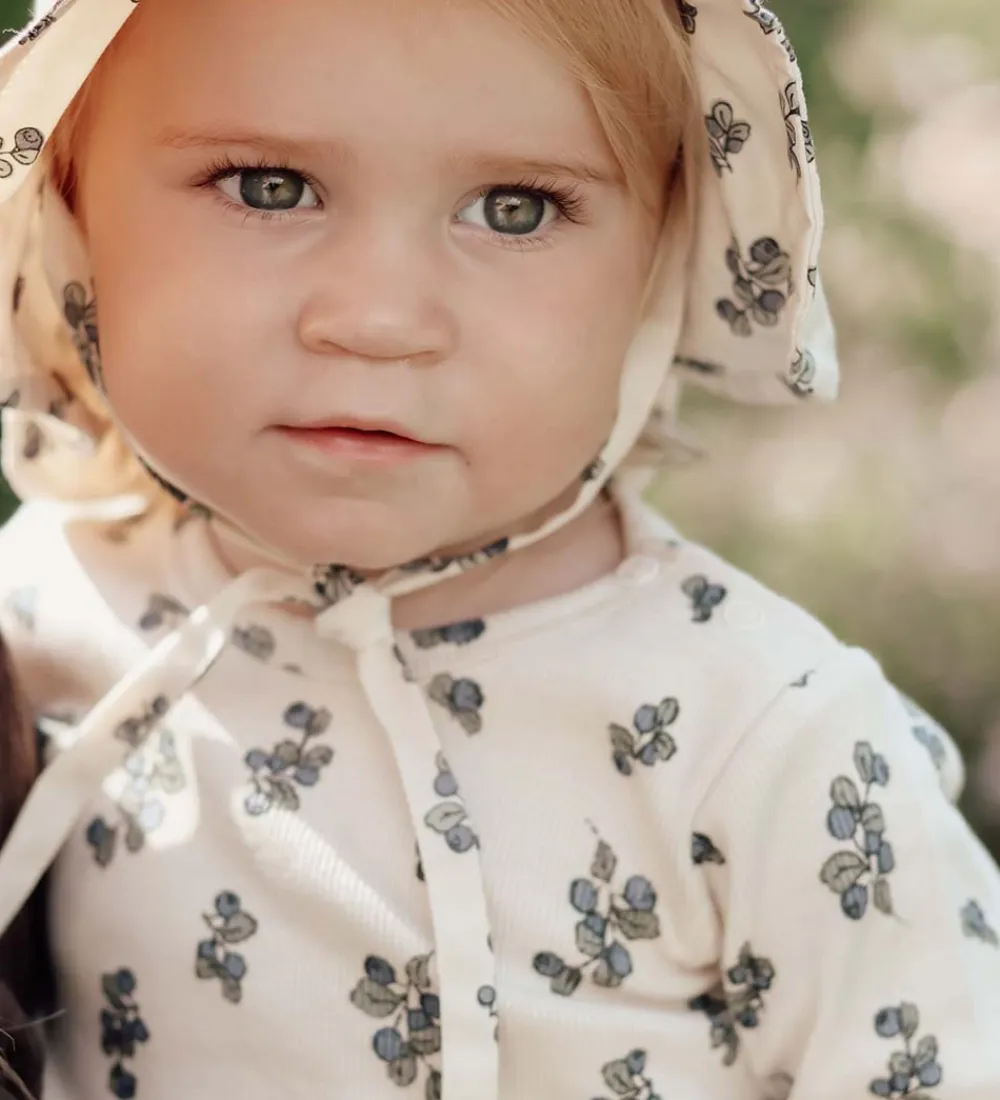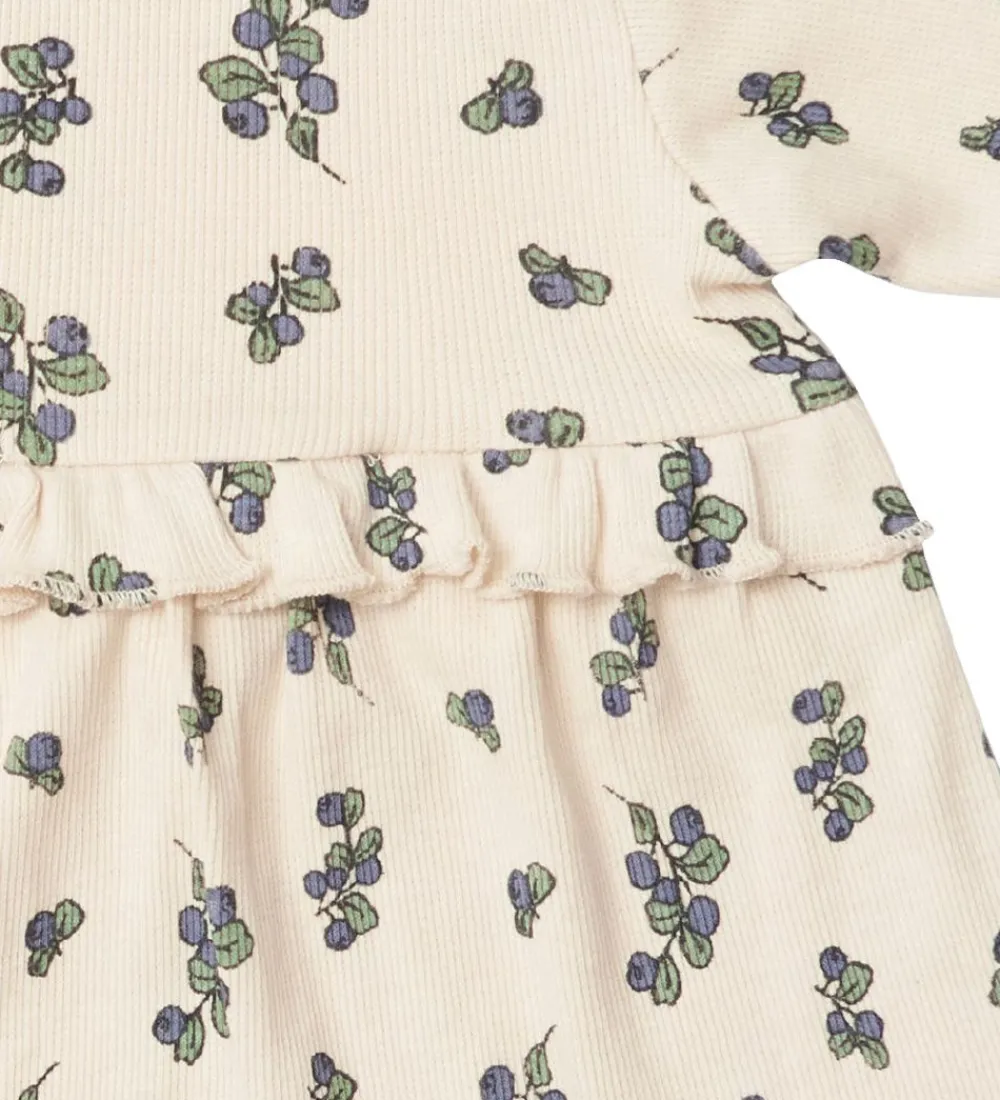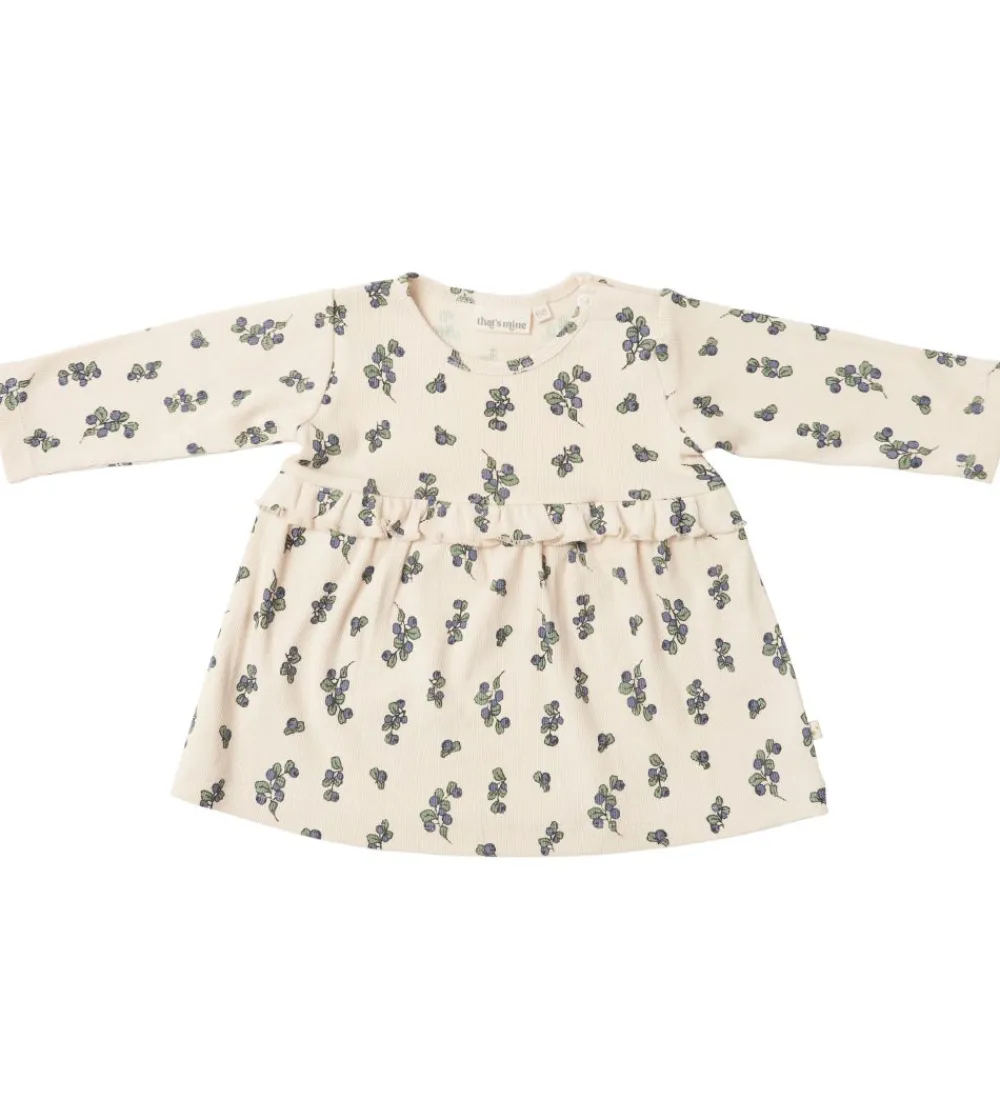 Sød That’s Mine tunika i beige rib med et alloverprint af blåbær med blade.