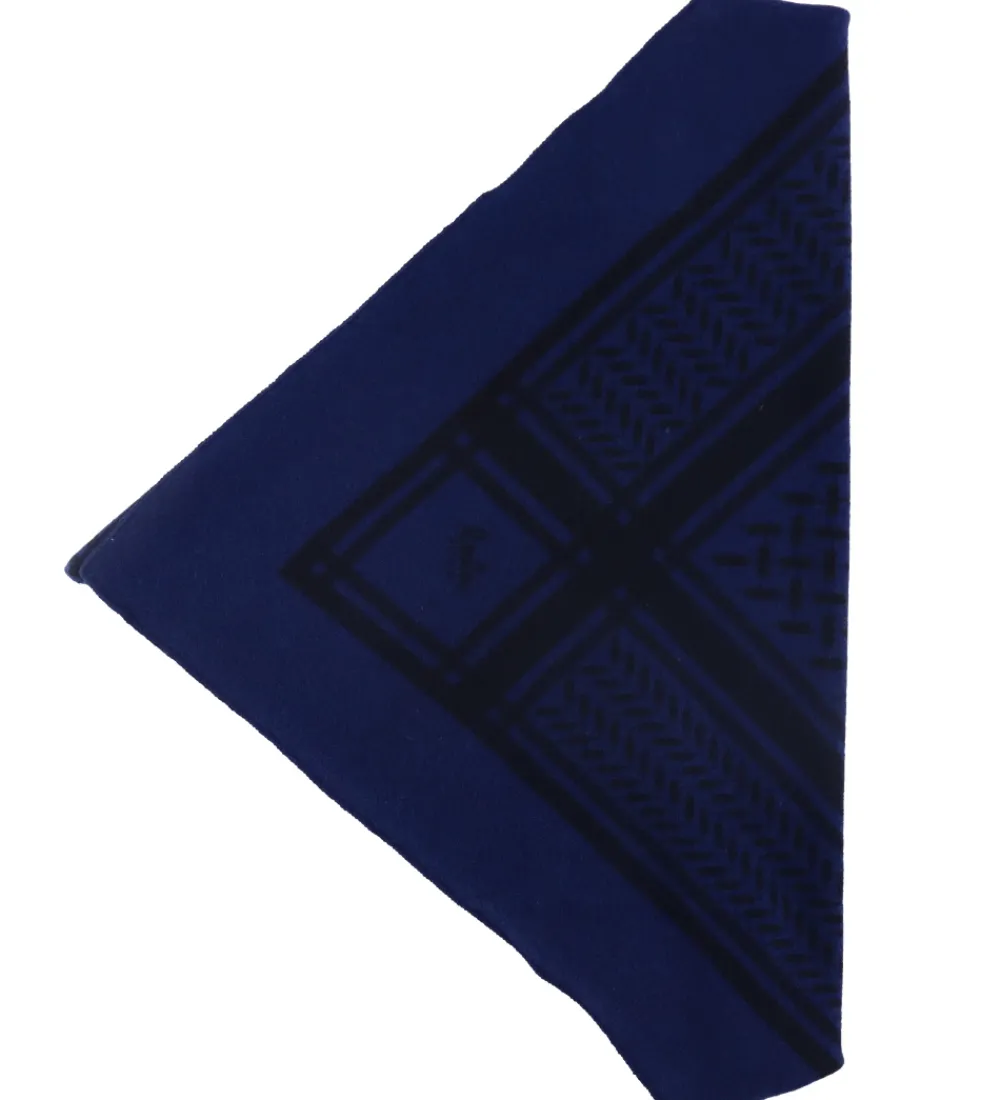 Skønt Lala Berlin tørklæde i mørkeblå med det klassiske Kufiya mønster i sort.