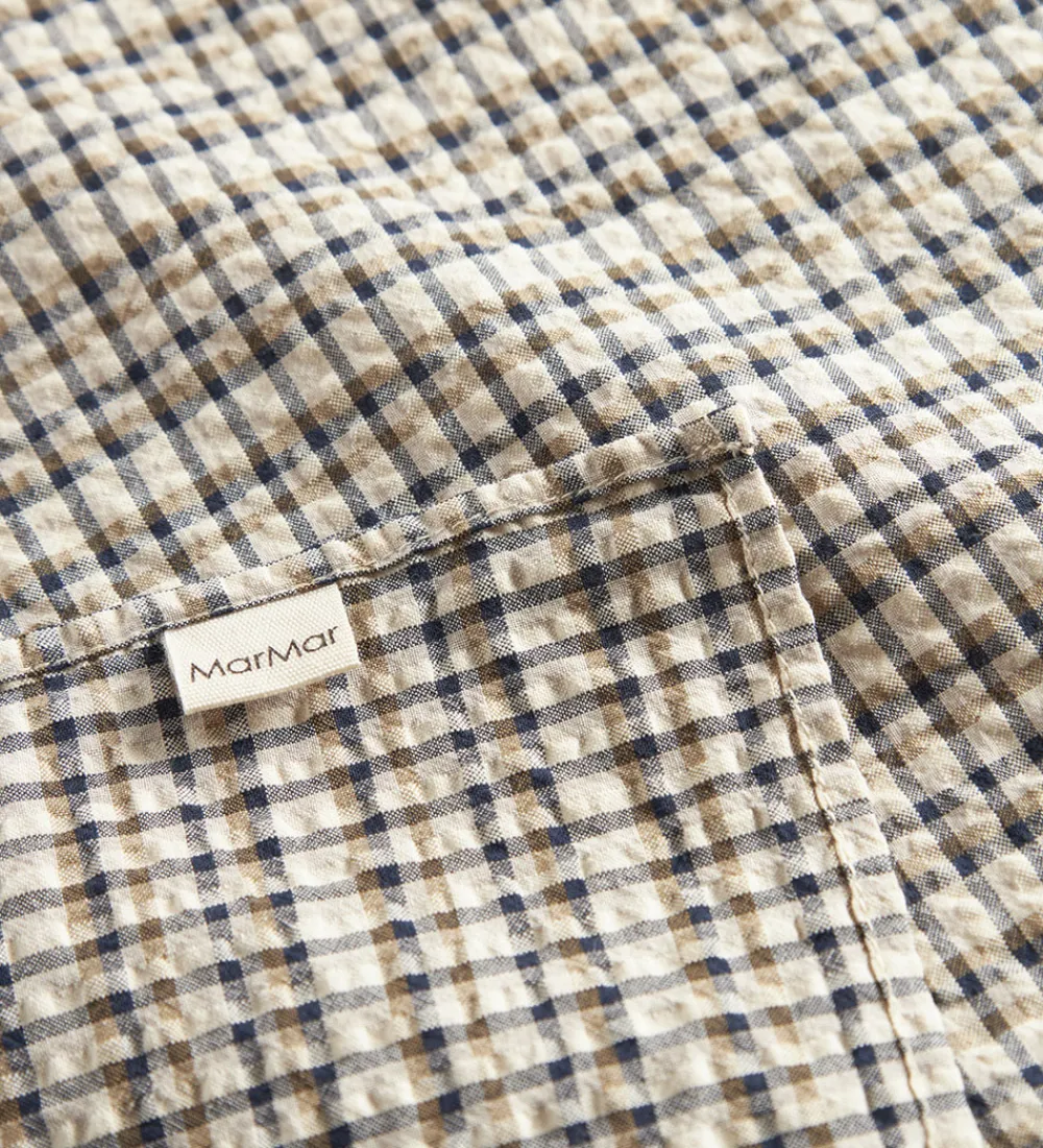 Flot MarMar tørklæde i en elegant kombination af mørkeblå og beige tern. MarMar tørklædet er designet med et enkelt og tidløst udtryk, der passer til mange stilarter. Perfekt til at fuldende ethvert outfit.
