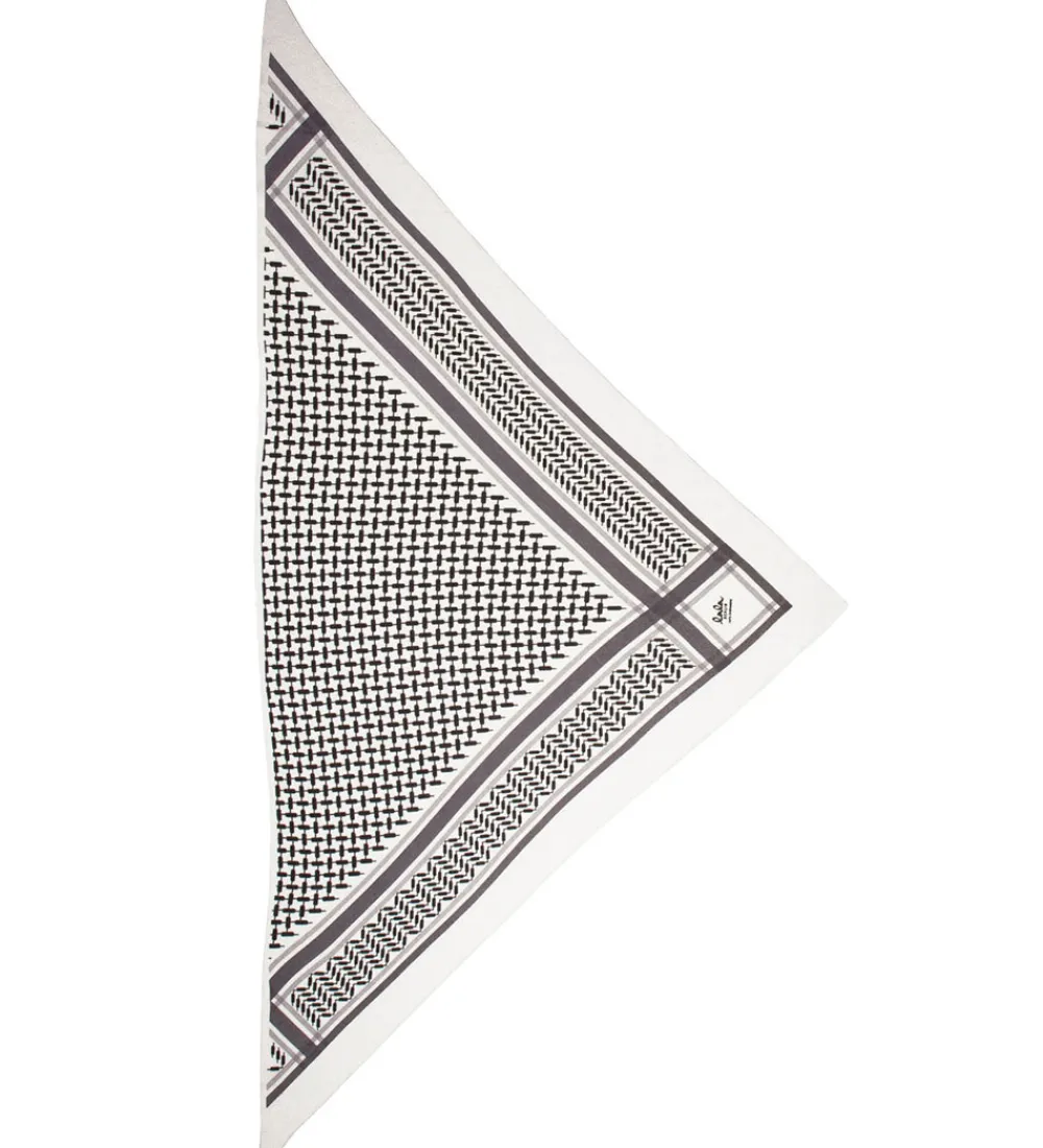 Fint Lala Berlin tørklæde i creme med det klassiske Kufiya mønster i sort og grå nuancer.