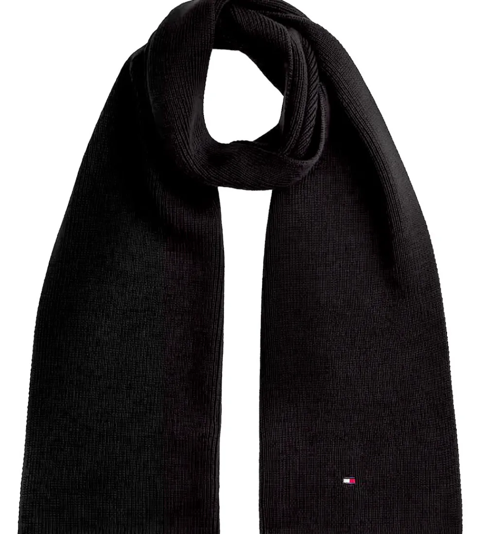 Elegant Tommy Hilfiger tørklæde i klassisk sort. Tørklædet har et diskret logoprint i den ene ende, der tilføjer et stilfuldt touch. Perfekt til kolde dage.