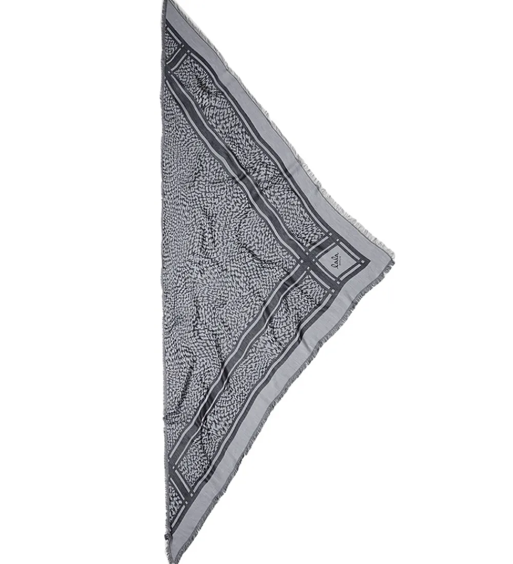 Lala Berlin tørklædet har en trekantet form med frynser langs kanten, og det er lavet i en let, fastvævet viskoseblanding.