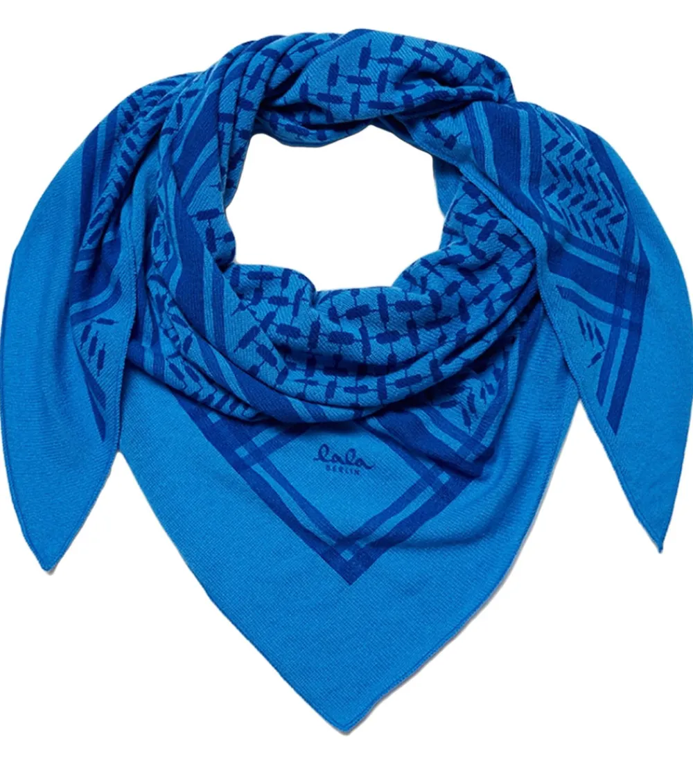Lækkert Lala Berlin tørklæde i blå med det klassiske Kufiya mønster i en mørkere nuance.