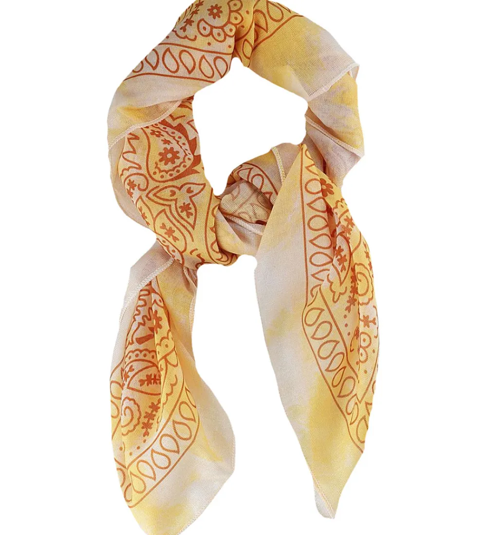 Smart By Stær tørklæde i gule nuancer, med det traditionelle paisley mønster i hvid og mørk gul.