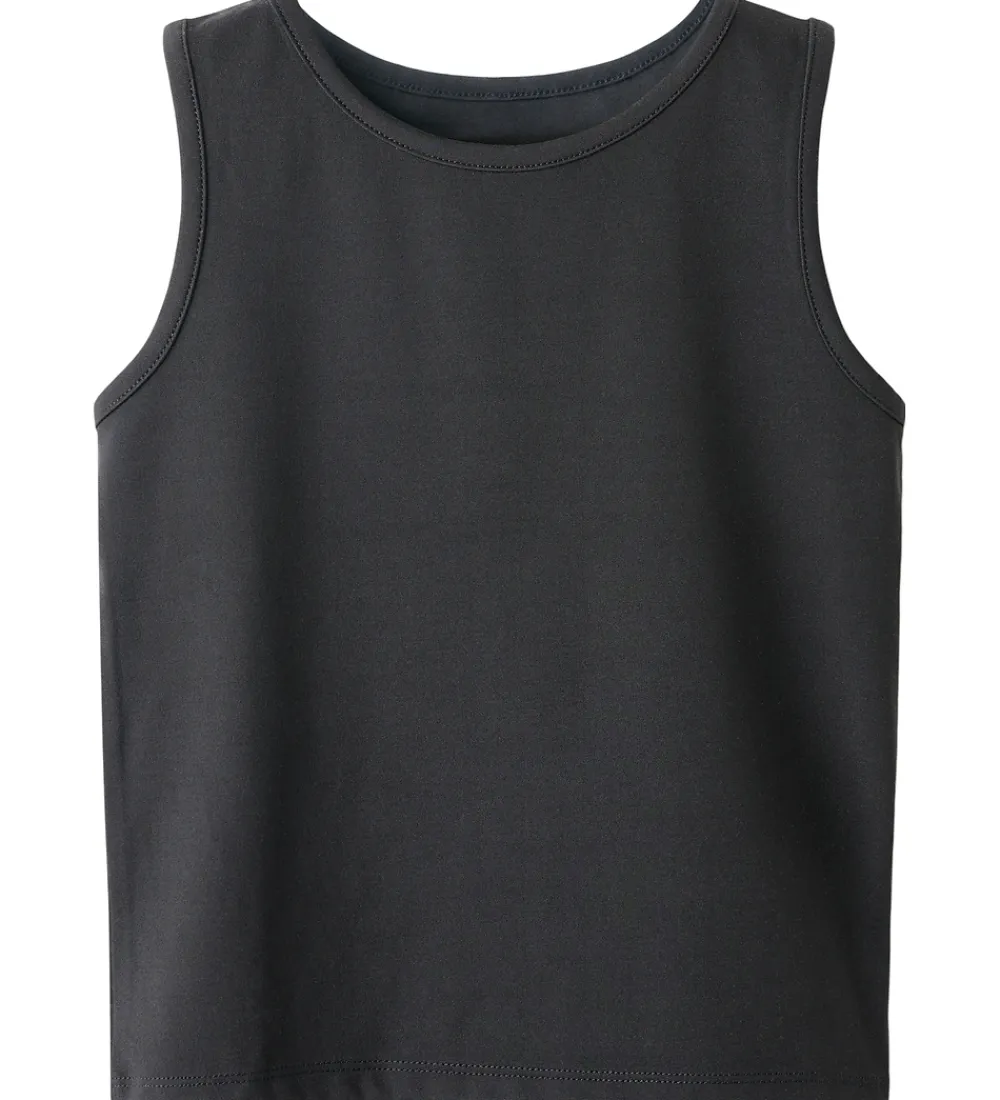 Fin Name It top i sort. Name It toppen har brede skulderstropper og en rund halsudskæring. Den er fremstillet i en blød og elastisk kvalitet.
