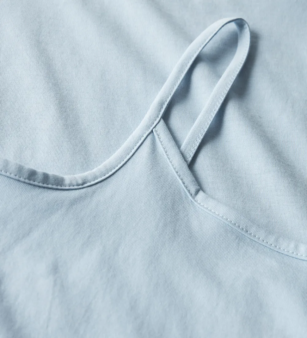 Elegant LMTD top i lyseblå. Toppen har en enkel struktur med spaghettistropper, hvilket giver den et let og elegant udtryk.
