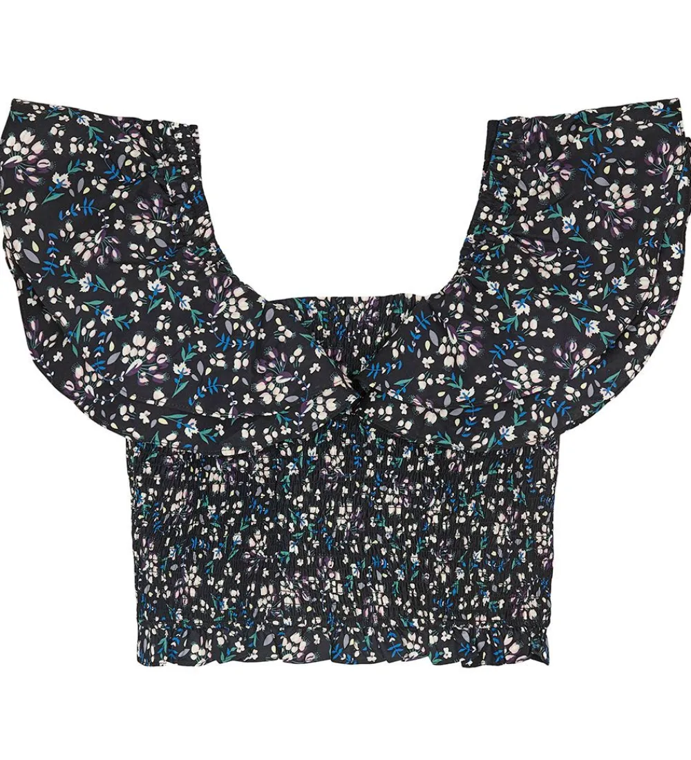 Designers Remix toppen er kort og har brede elastikker over skuldrene med skønne flæser, som giver et unikt look. Toppen er i smock-elastik, hvor der også er en smal flæse i bunden.