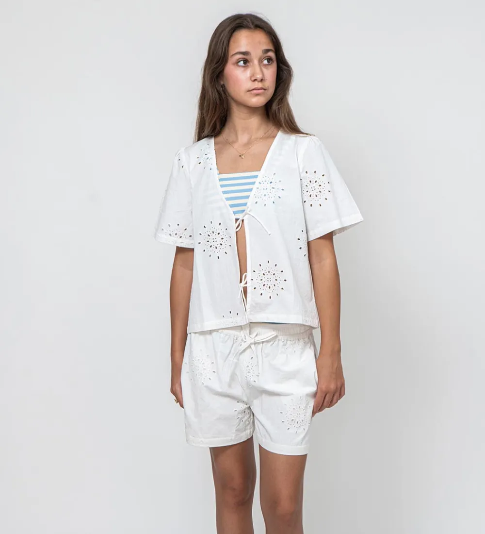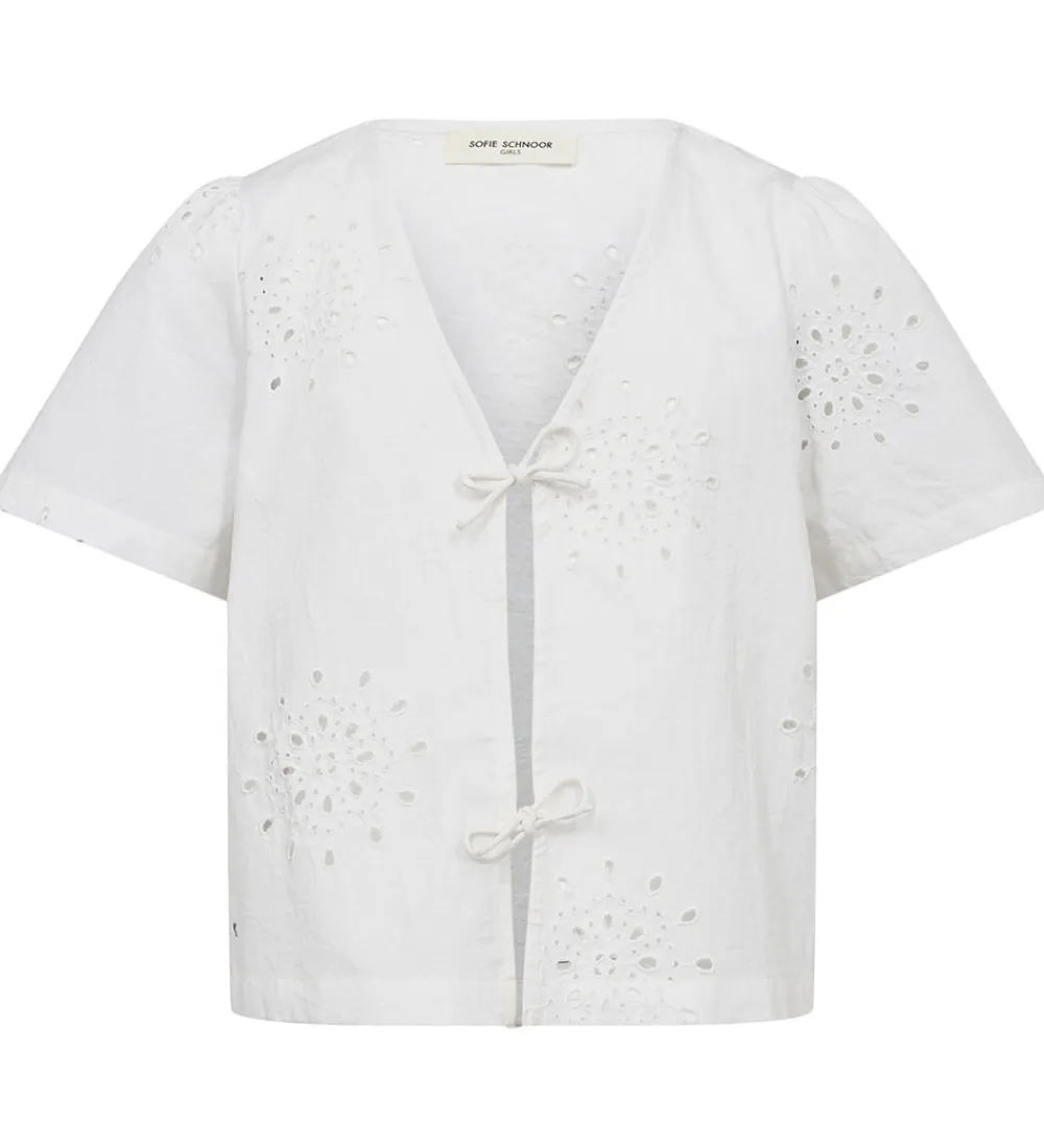 Flot Sofie Schnoor top i ensfarvet hvid med fine blonder over det hele.