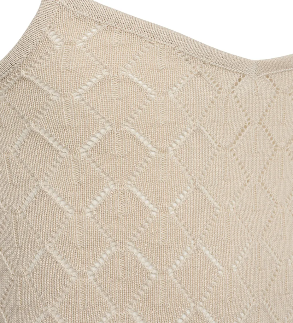 Flot Sofie Schnoor top i cremehvid med et elegant hulmønster af geometriske diamanter, der giver toppen et stilfuldt og moderne udtryk.