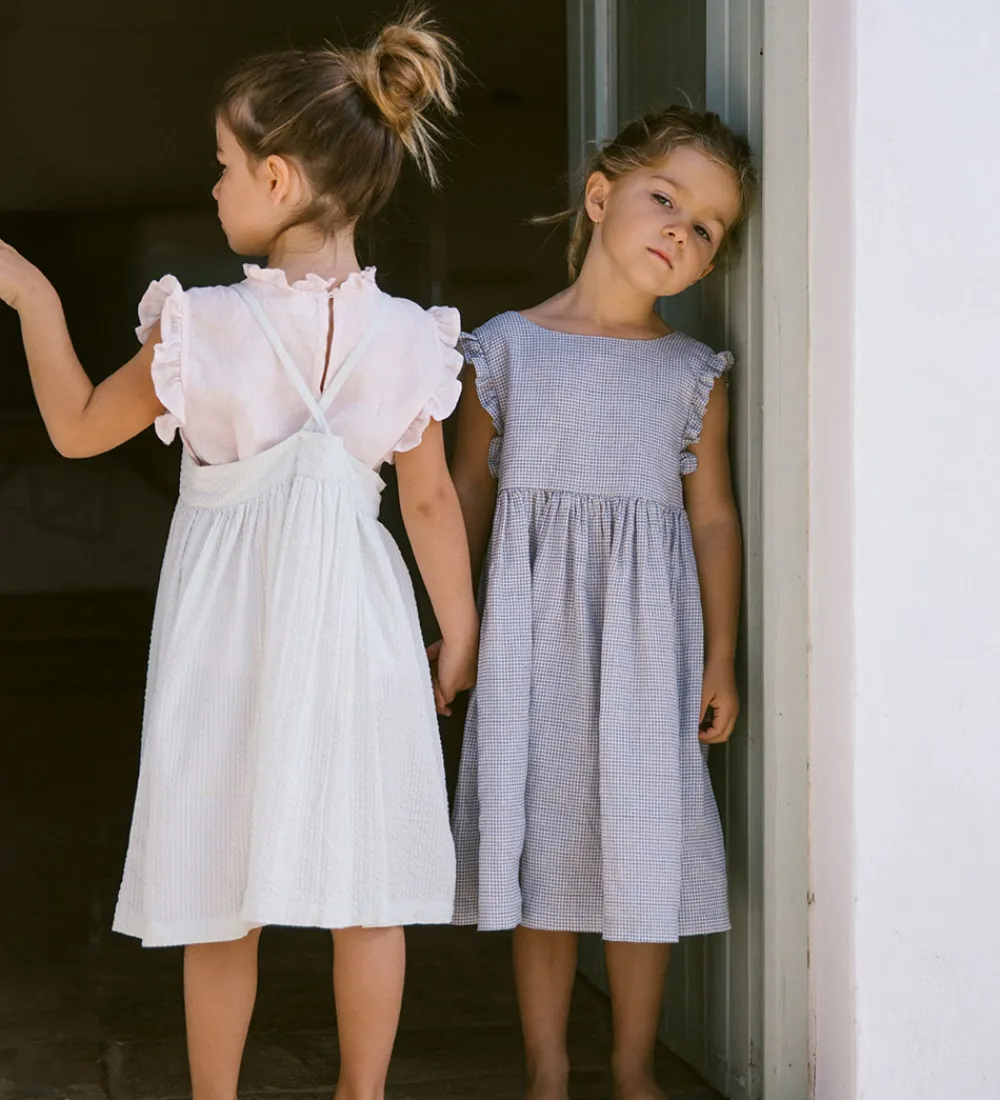 Elegant MarMar top i en lys rosa nuance med flotte flæser ved ærmerne samt kraven. Toppen er uden ærmer og åbnes i nakken med en knap og elastik.