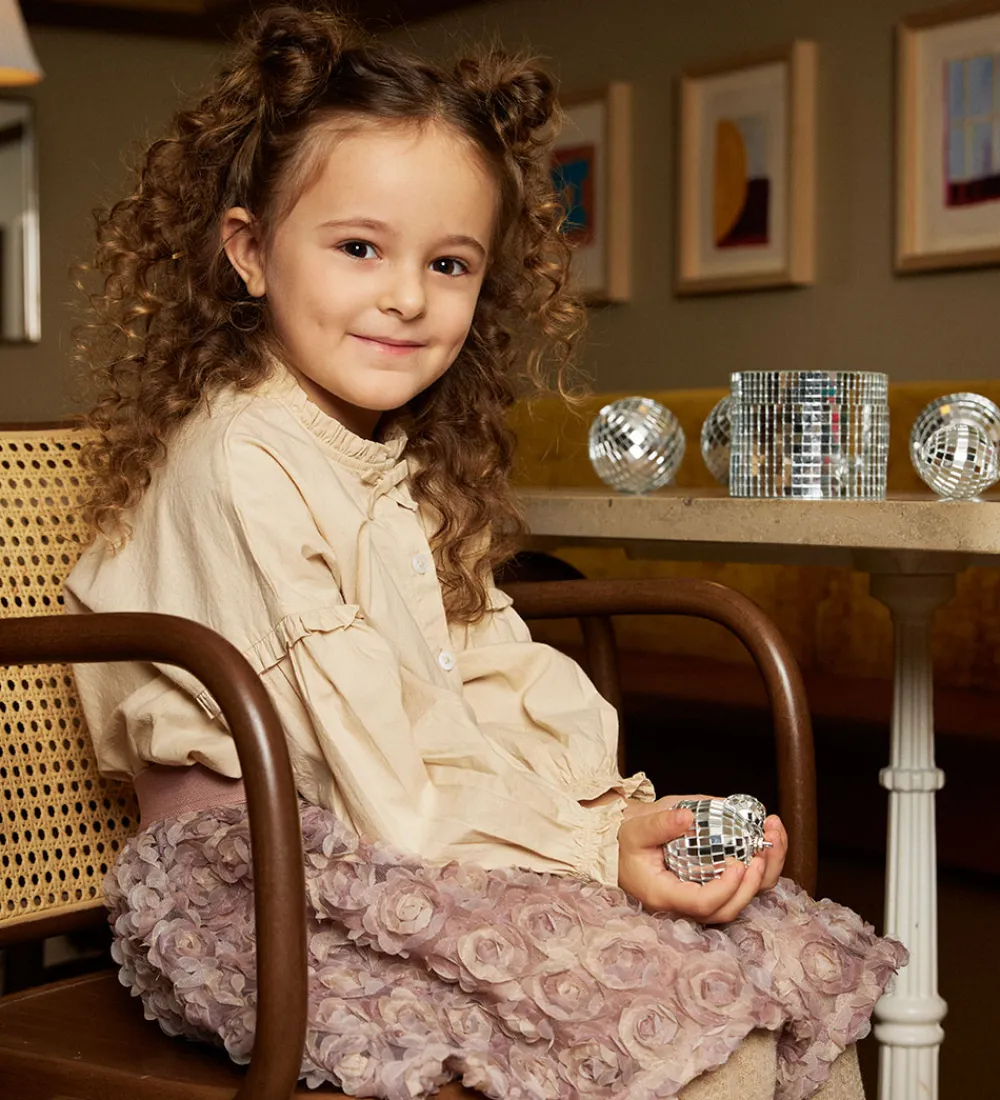 Minymo tylnederdelen har en bred elastikkant i livet, og nedenunder falder skørtet med masser af vidde. Det består af et lag tyl og et lag bomuldjersey inderst.