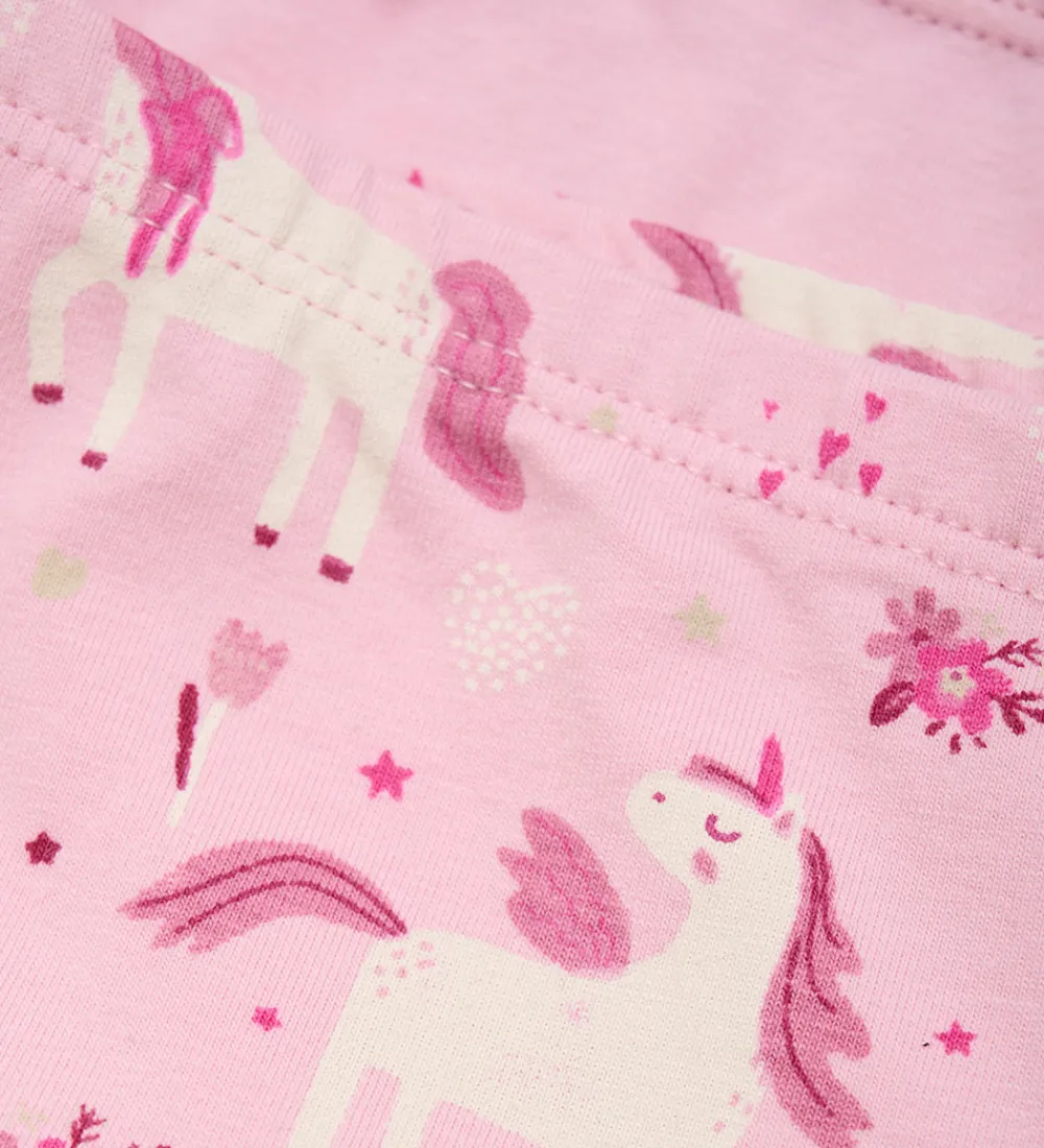 Praktiske Minymo trusser solgt i en 2-pak med en ensfarvet lyserød og en med et alloverprint af enhjørninger. Minymo trusserne har en elastikkant i livet, som sørger for god pasform.