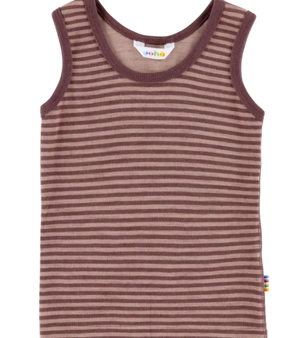 Flot Joha undertrøje i rosa og lilla striber. Undertrøjen har en klassisk rund halsudskæring og brede stropper. Den bløde bomuldsstruktur sikrer en behagelig oplevelse. Joha undertrøjen har en lille diskret regnbuemærke på siden.