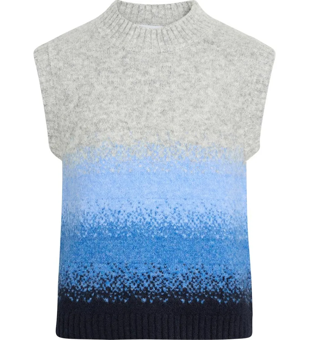 Flot Grunt vest i meleret grå, blå og navy strik.