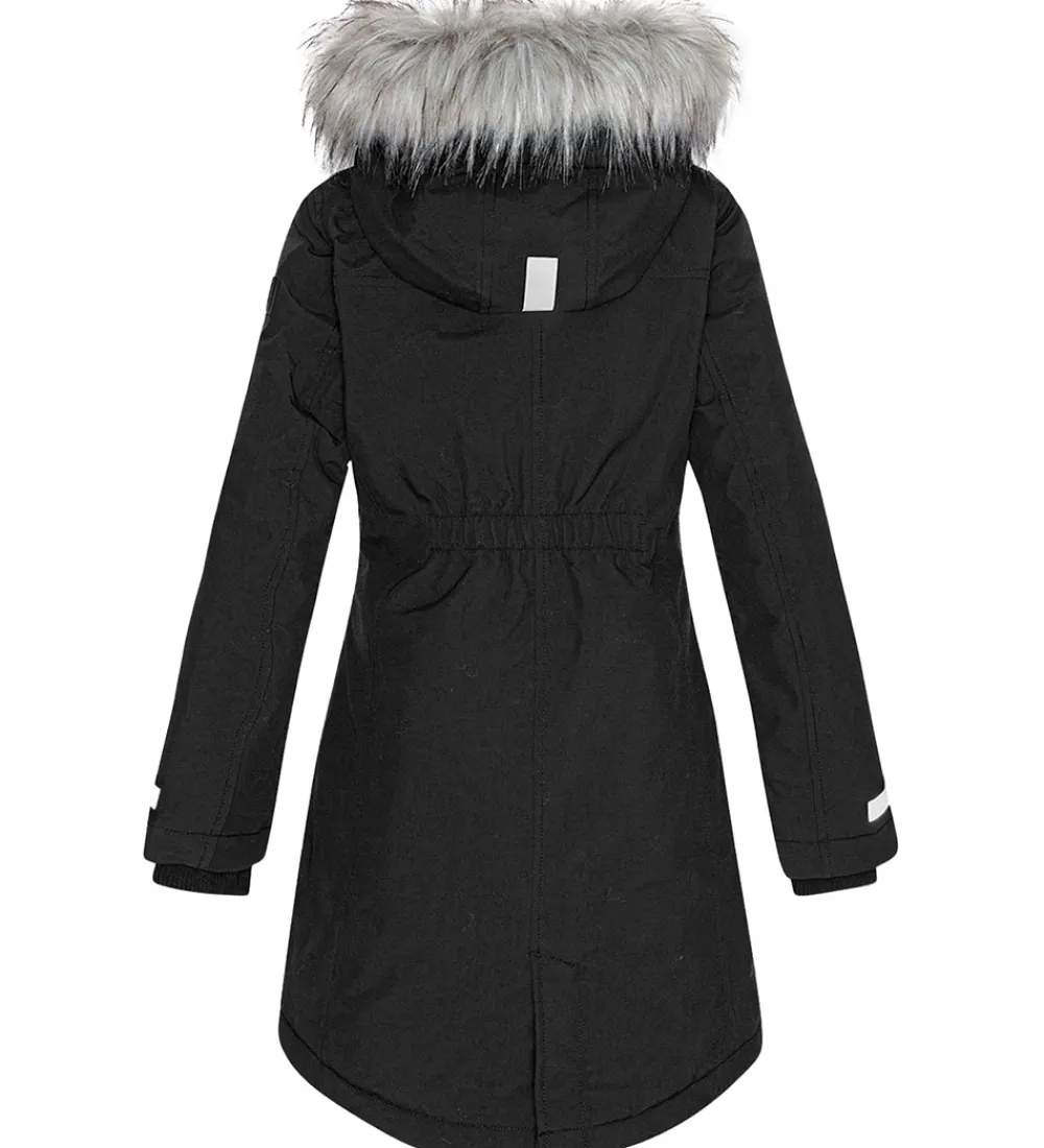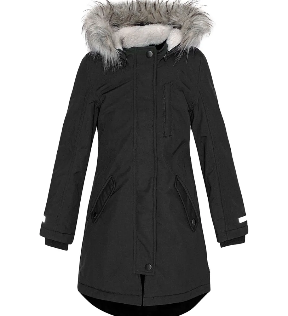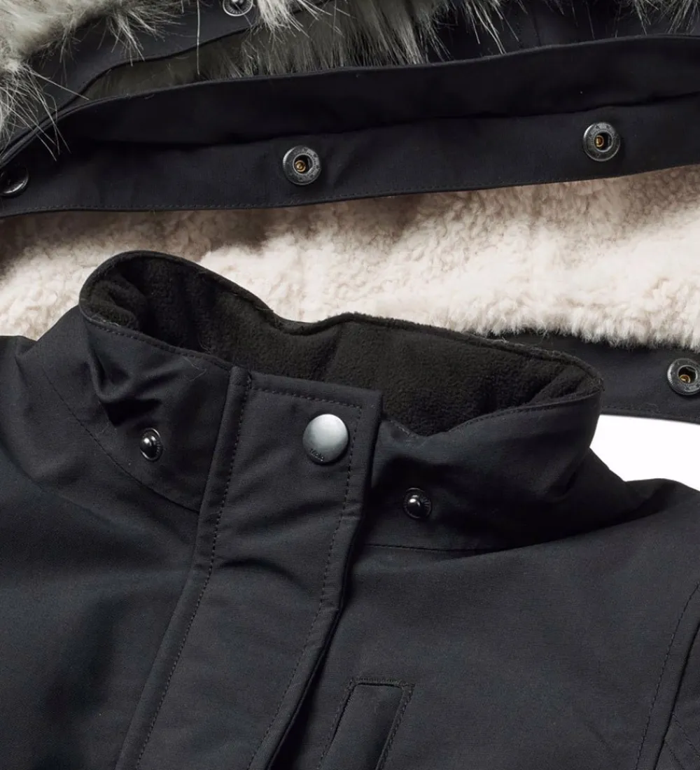 Flot Molo vinterfrakke i ensartet sort. Hætten er foret med hvidt teddyfleece.