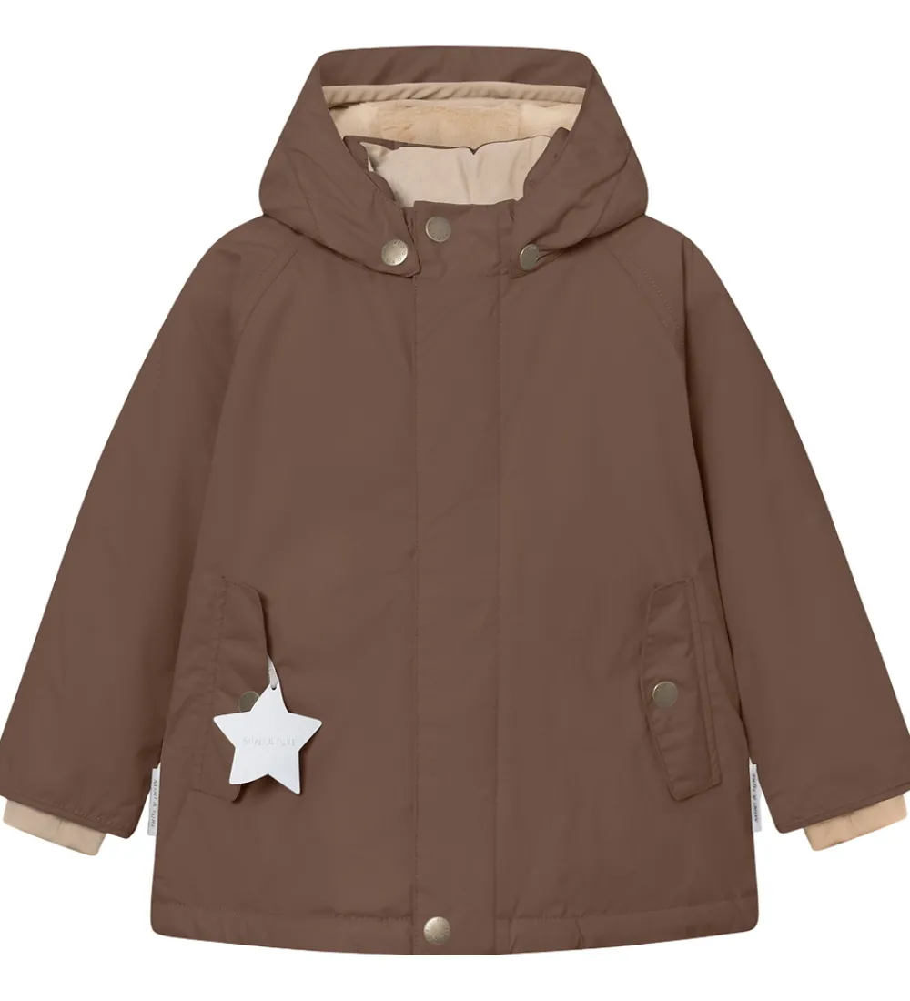 Fin Mini A Ture vinterjakke i kastanjebrun. Vinterjakken er med beige for.