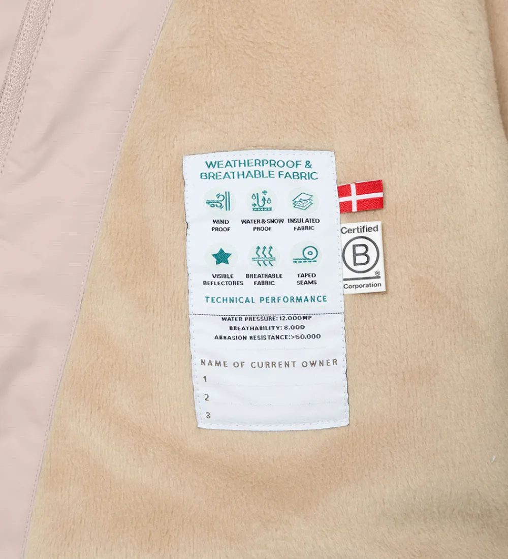 Dejlig Mini A Ture vinterjakke i lys rosa. Vinterjakken er med beige for.