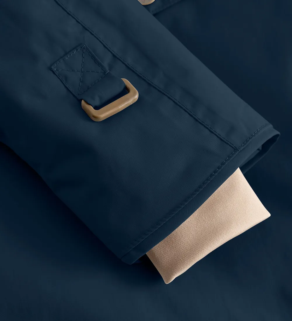 Dejlig Mini A Ture vinterjakke i navyblå. Vinterjakken er med beige for.