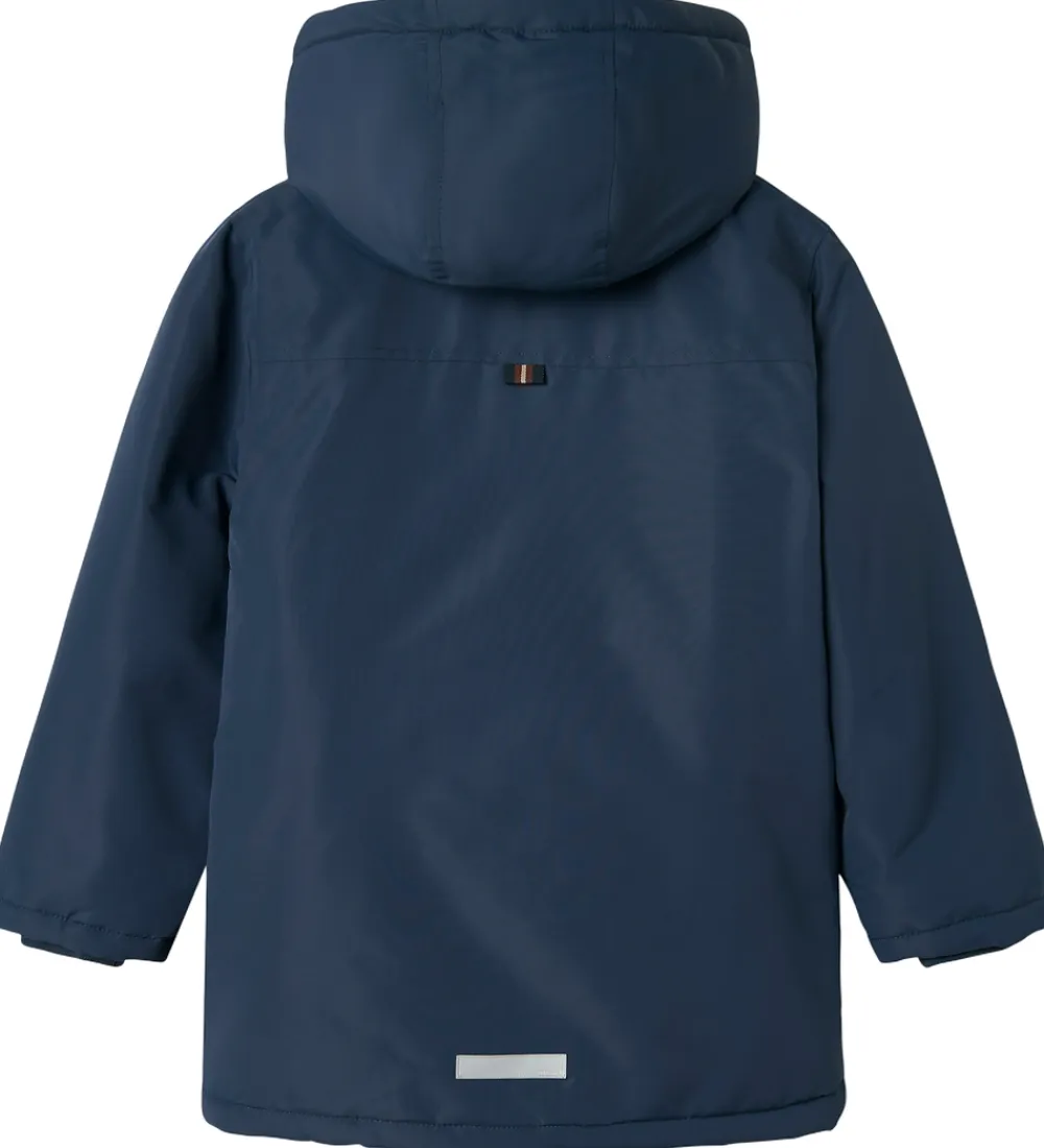 Stilfuld Name It vinterjakke i en flot mørkeblå nuance og med for af beige teddyfleece. Vinterjakken har en praktisk hætte og rummelige lommer, der gør den både funktionel og moderne. Ærmerne har snefang og ribkanter. Name It vinterjakkenjakken er ideel til de kølige årstider.