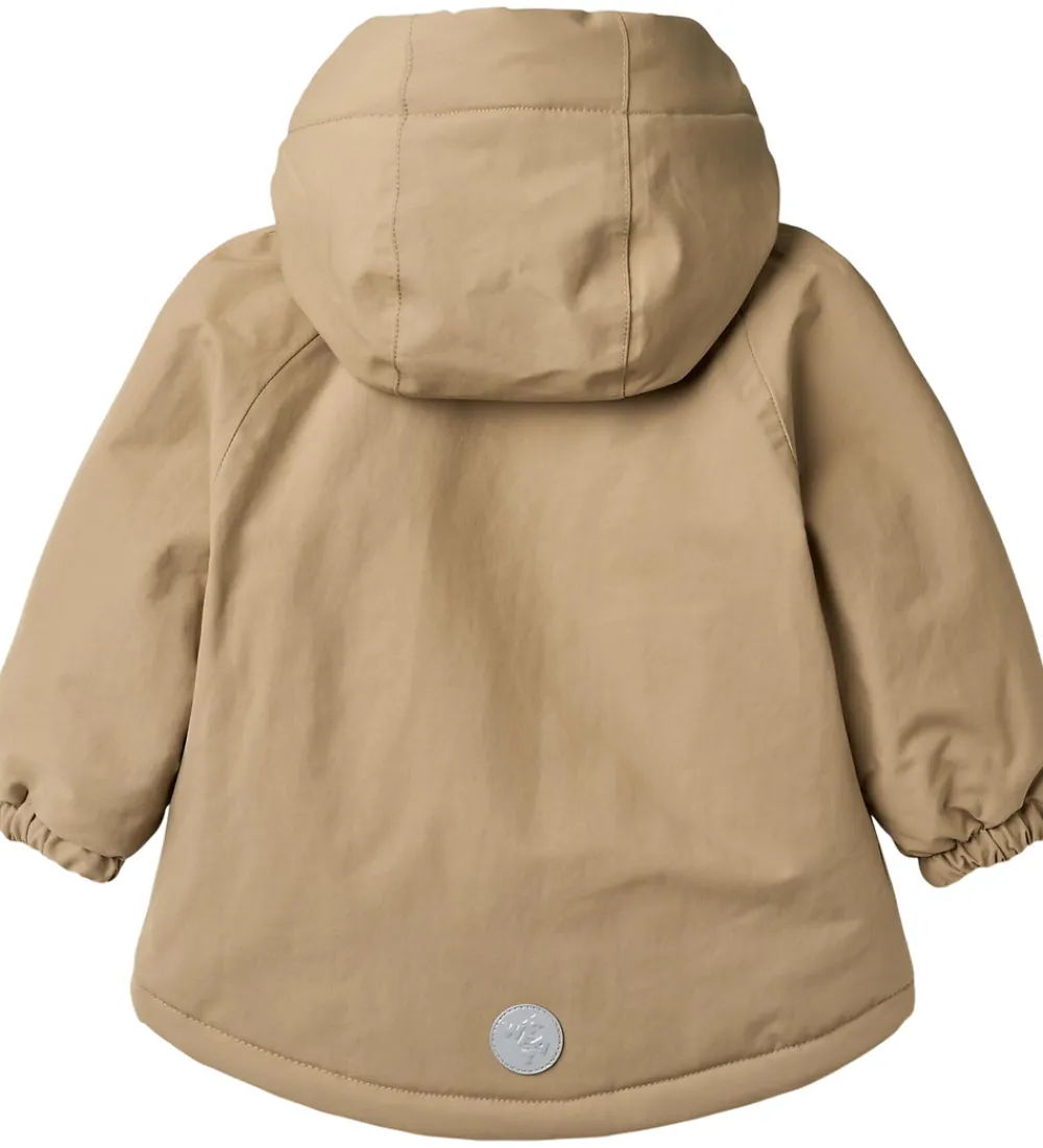 Wheat vinterjakken har en aftagelig hætte, der sidder fast med trykknapper om ribkraven, og i ansigtsåbningen er der en bred ribkant. Ærmerne har brede, fleeceforede elastikkanter.