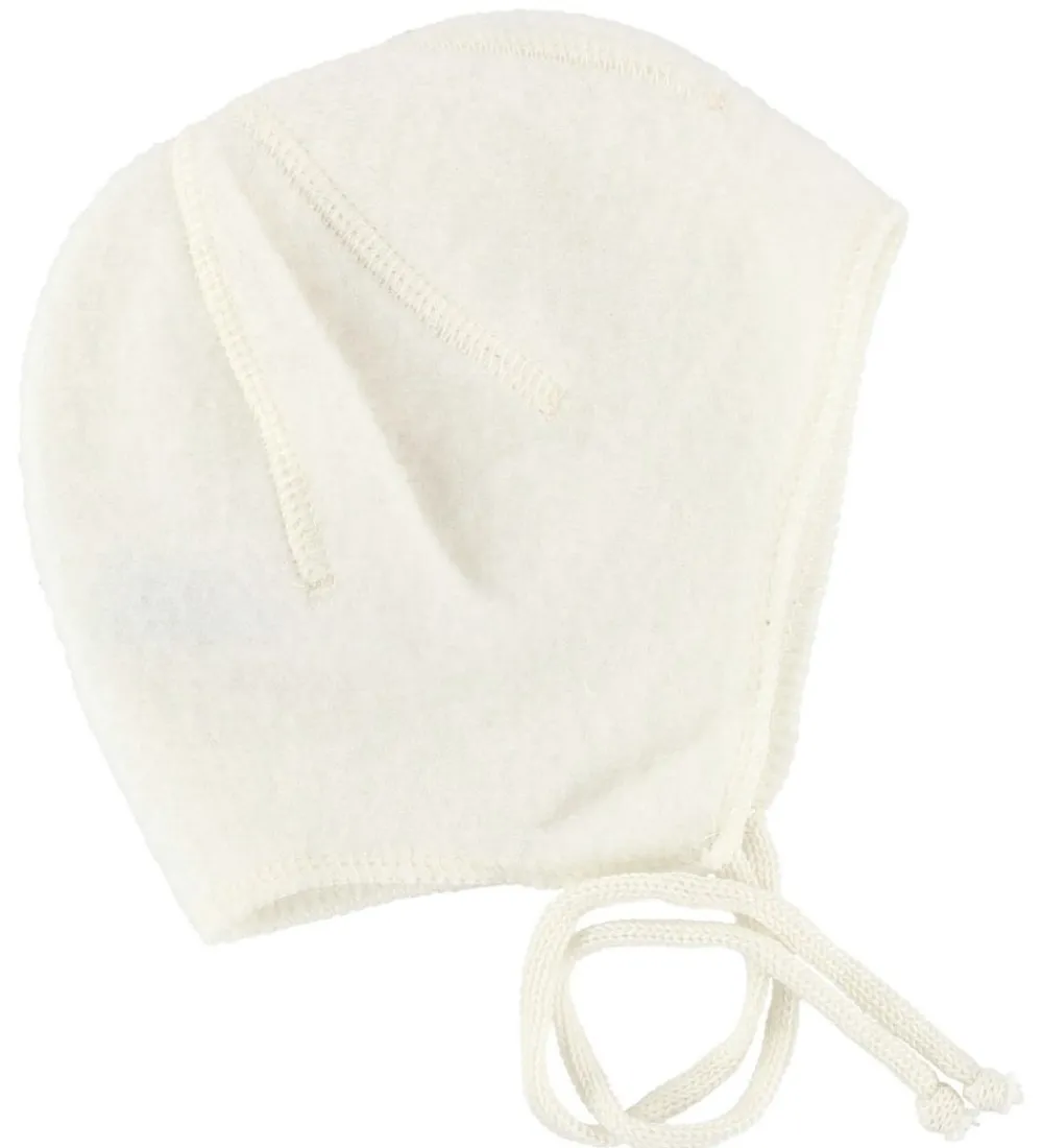 Joha hjelmen er lavet af en kraftig, filtet uldkvalitet, der føles rigtig blød og behagelig mod huden. Ulden sørger for, at barnet altid har den helt rigtige temperatur.